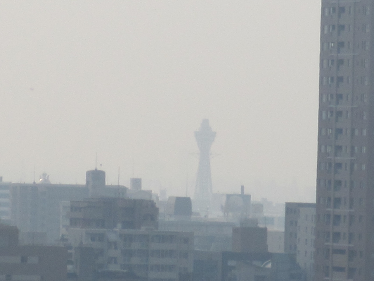 ここからは天王寺を一望、というわけにはいかないが、近くの街並みや遠くはあべのハルカス、通天閣が見える。