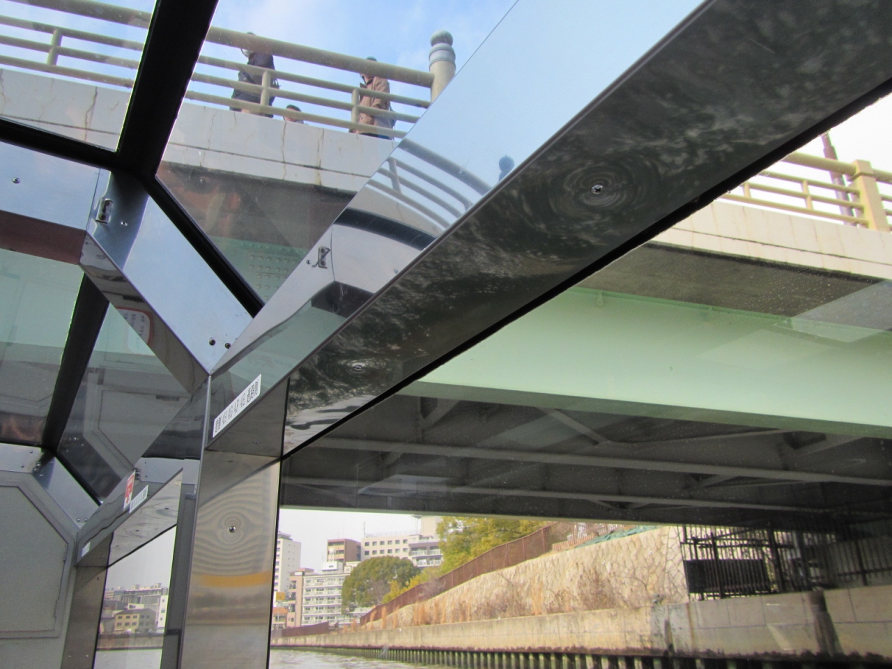 また、天井がクリアーになっているので、橋を下から眺めることができる。