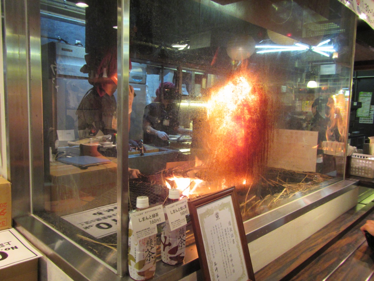 わらを使って鰹をあぶっているところが見えるのも人目を惹く要因だろう。