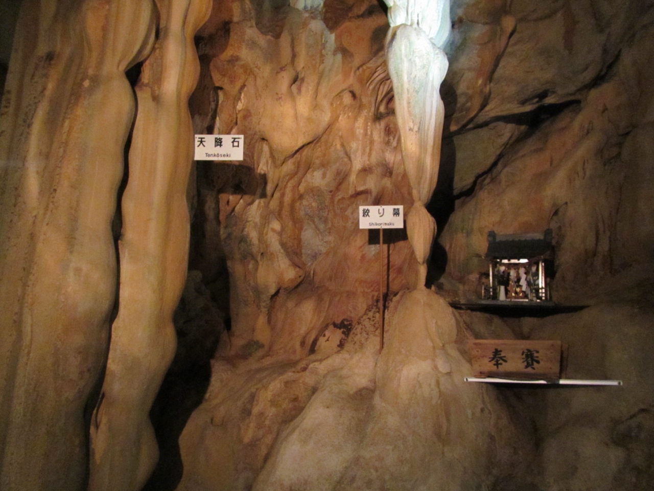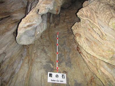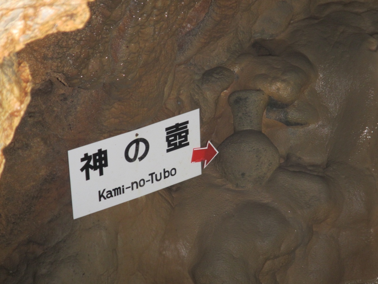 途中滝があったり、コウモリの棲む広間があったり、出口付近にはり古代人の使っていた壺が鍾乳石に埋まっていたりと