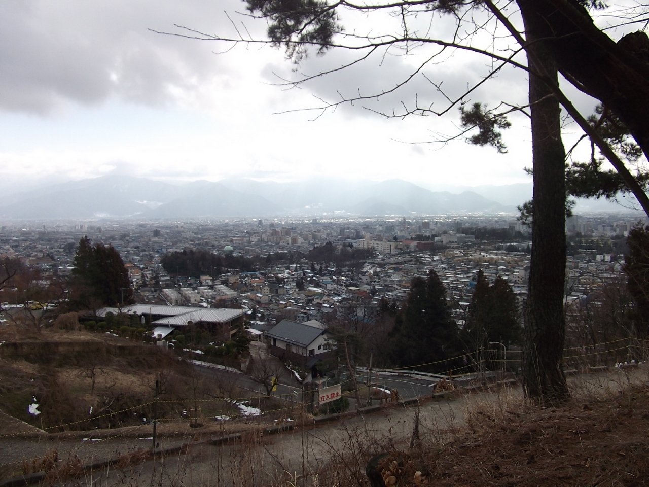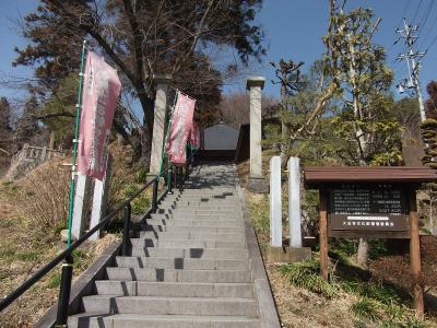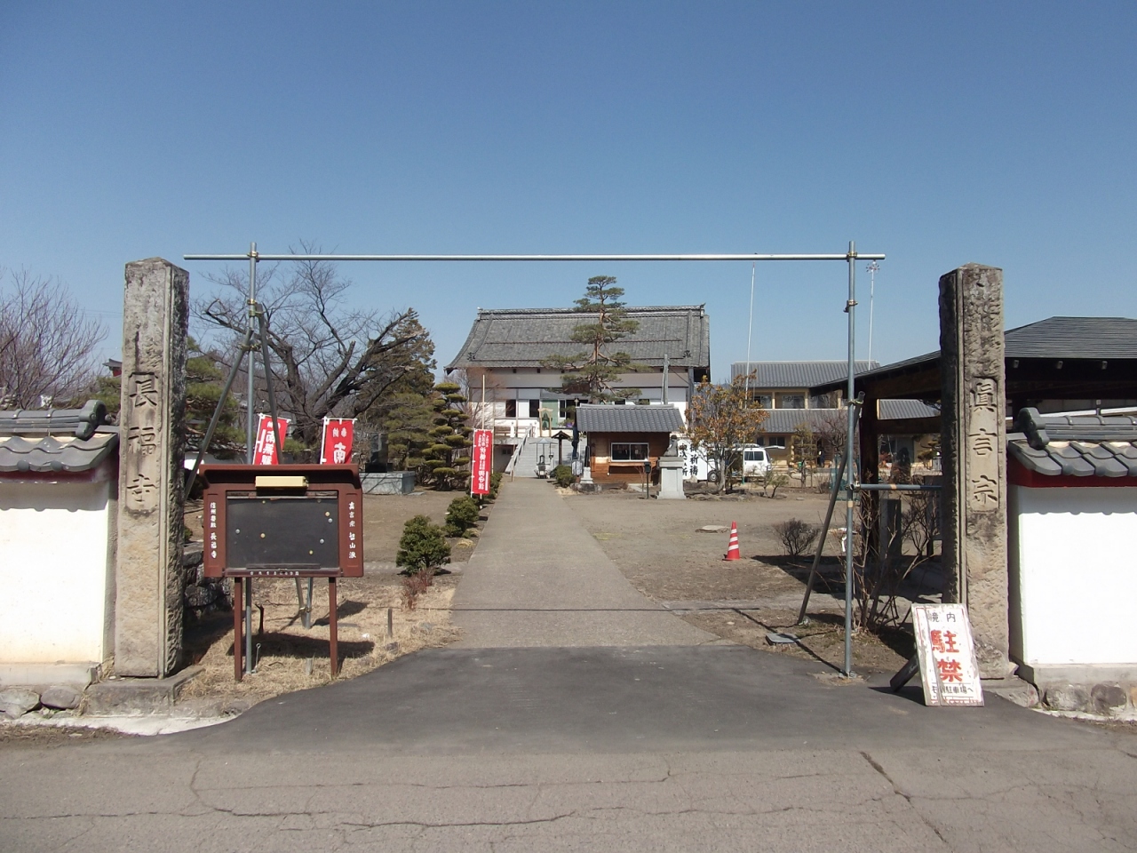 善光寺から北へ1.5km、大峰山の山道を登る。車なら5分程度。お参りに来る方向けの駐車場がある。