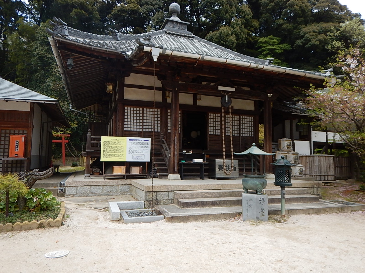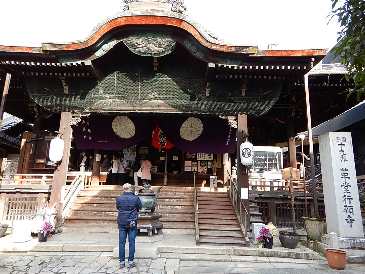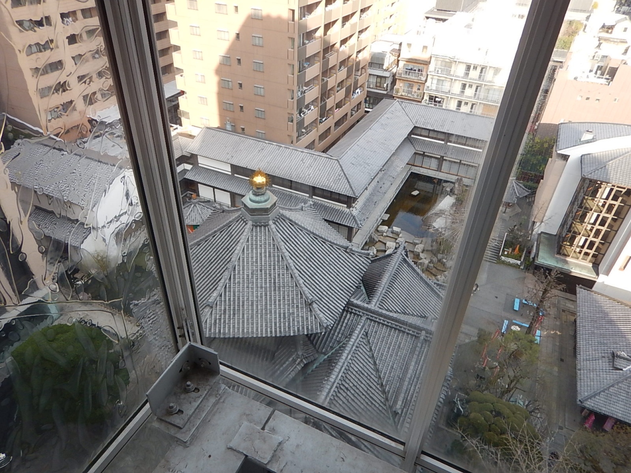 西国札所として参拝者が多い。本堂は正面から見るとわからないが、その名の通り六角形をしている。隣のホテルのエレベータからその屋根を見ることができる。展望室などはないので、シースルーのエレベータから外を見て、9階まで上ってまた降りるのみ。- 旅行時期