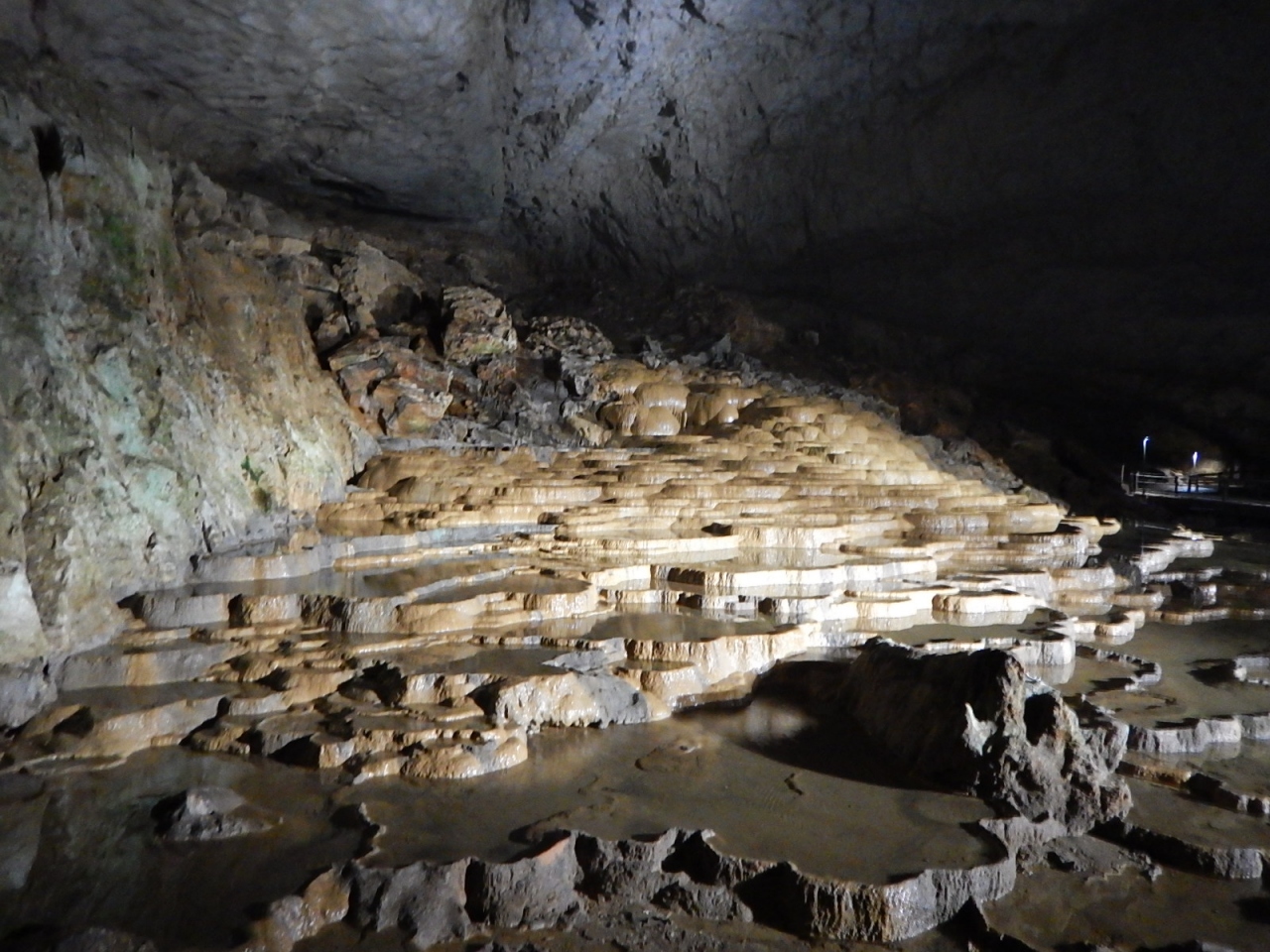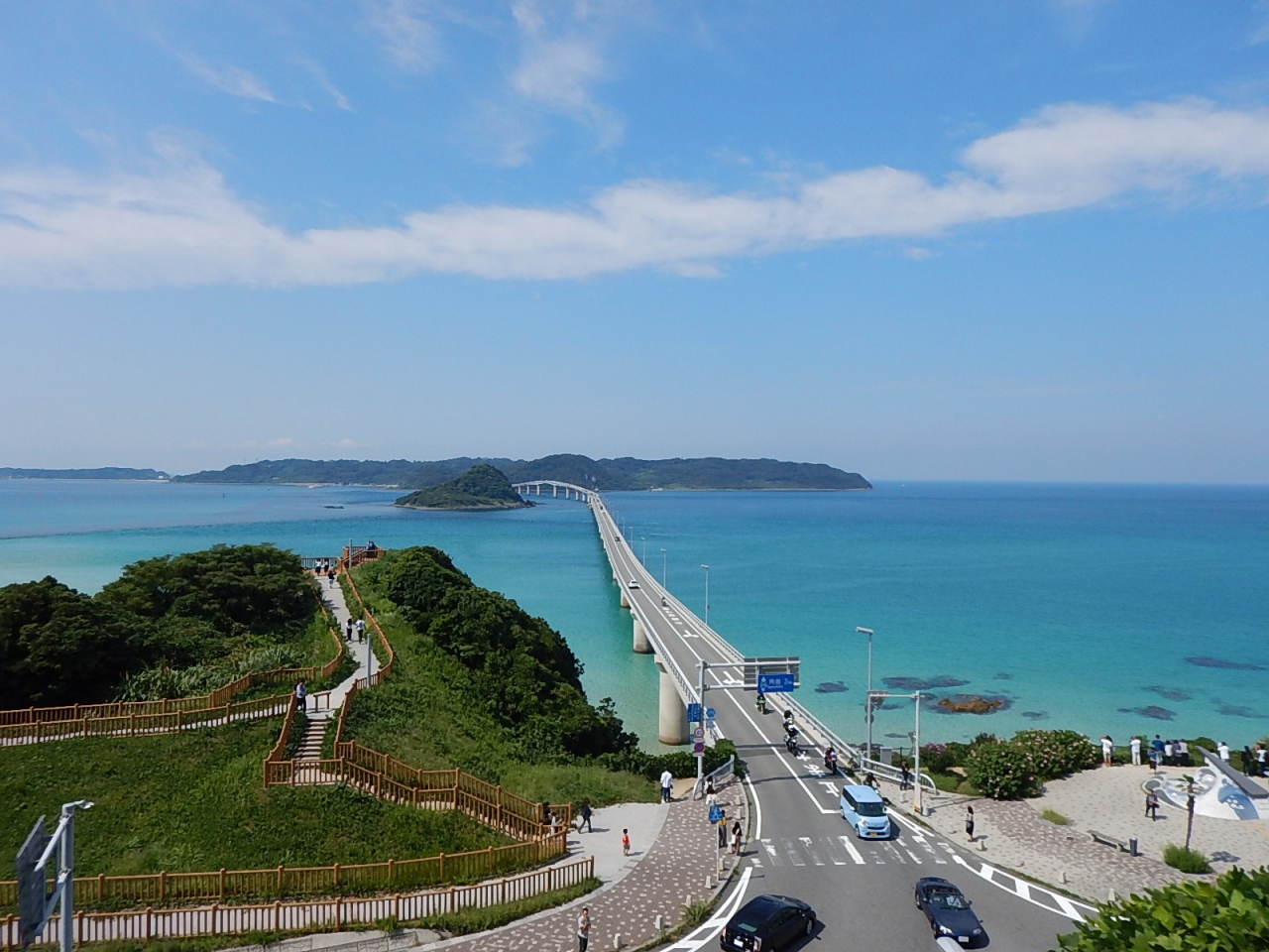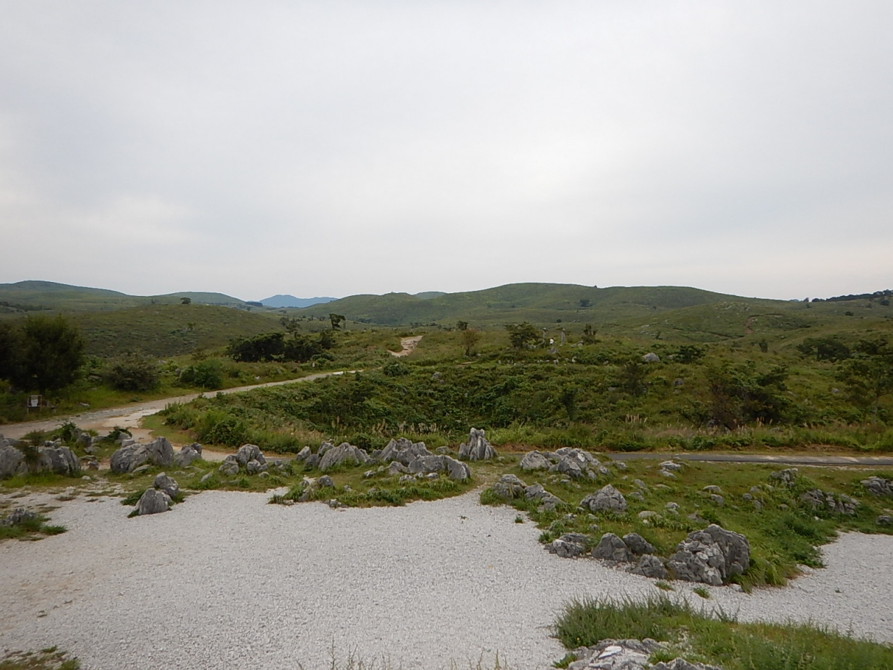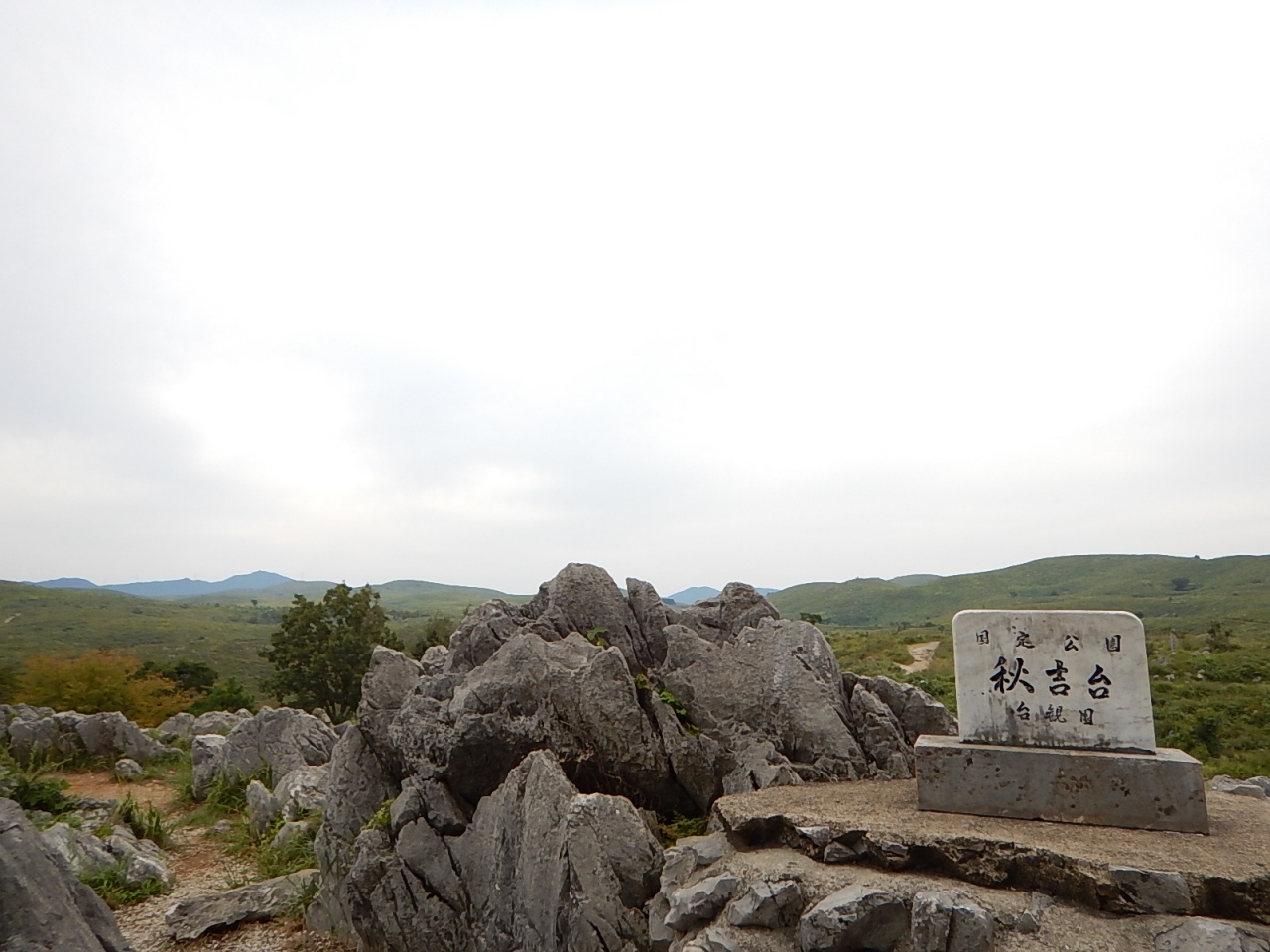 秋吉台を見渡せる展望台があり、起伏に富んだ地形を一望できる。もっと石灰石が点在しているのかと思ったが、個々がそれほど大きくないためか、手前の方しか石は見えなかった。それでも広々とした緑の大地とその間を走る道路は素晴らしい光景だった。- 旅行時期