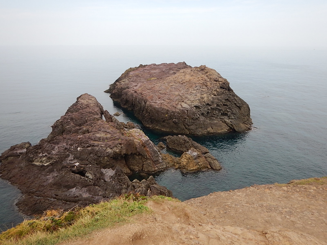 岩を登って岸壁ギリギリまで行けるが、柵がないので厳重注意。