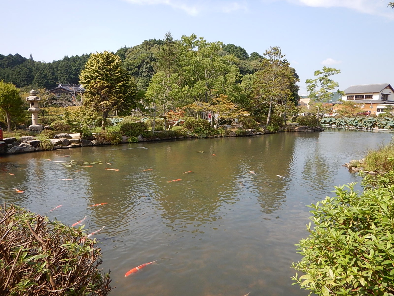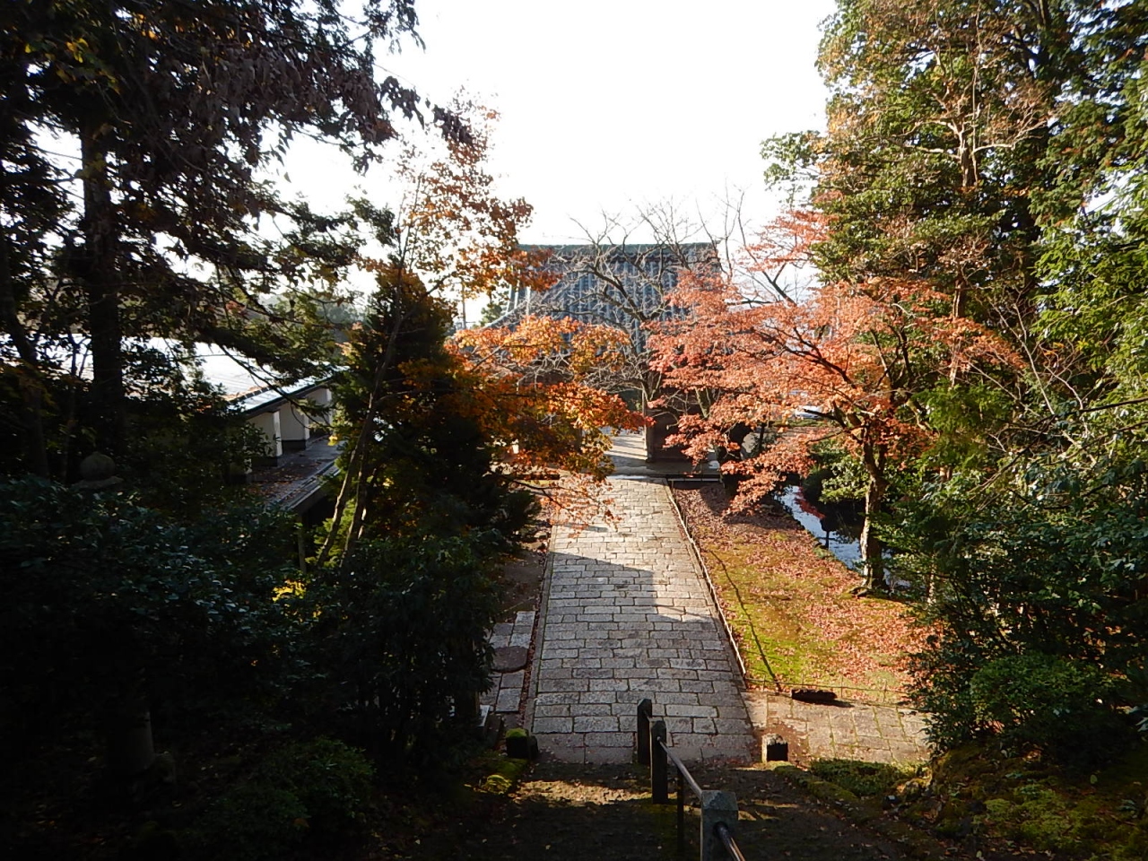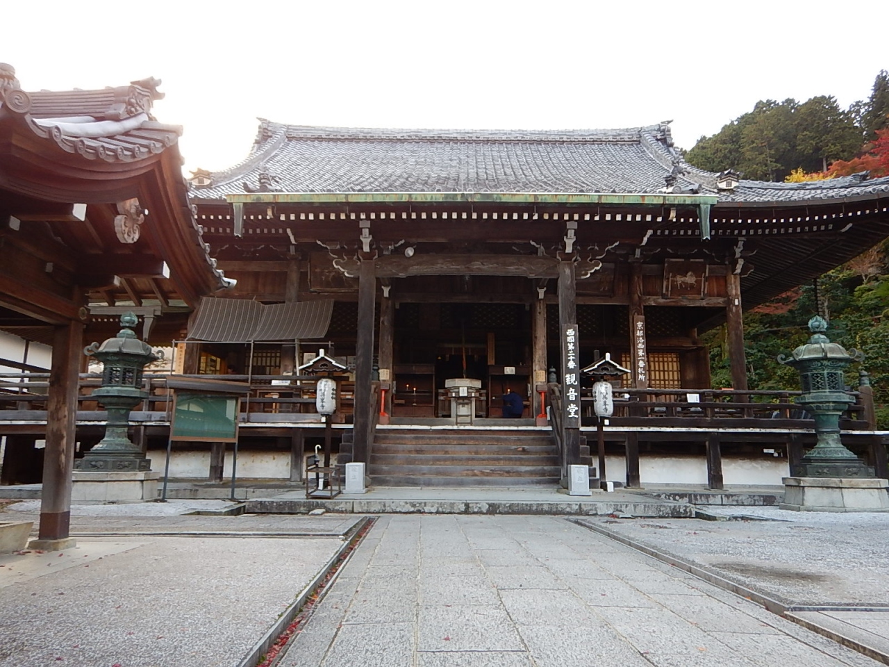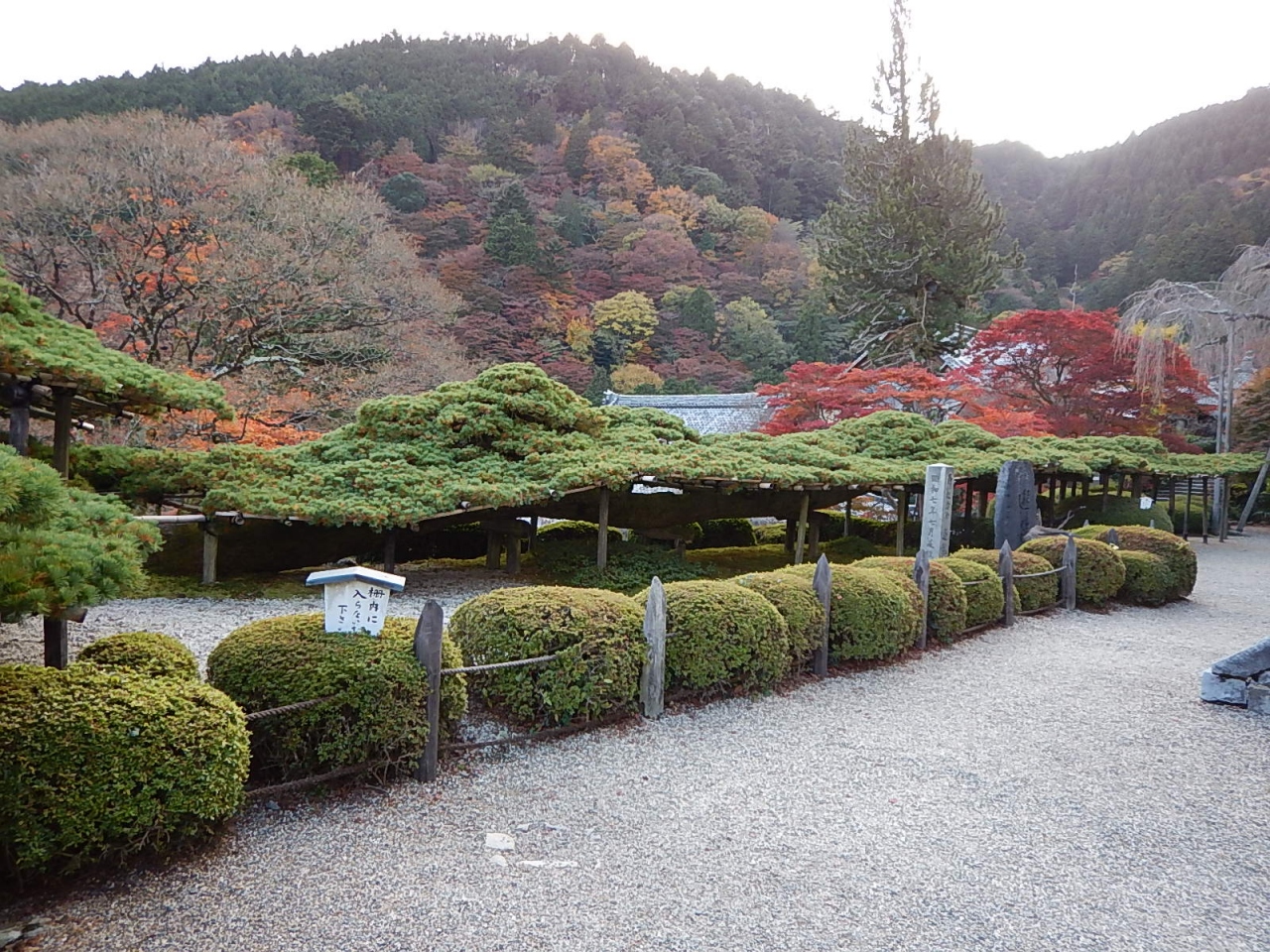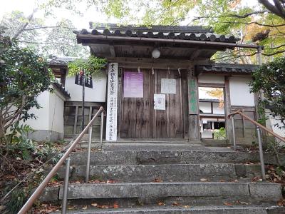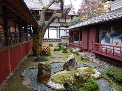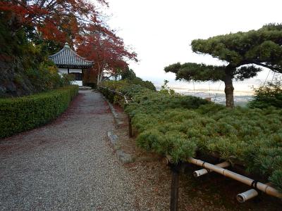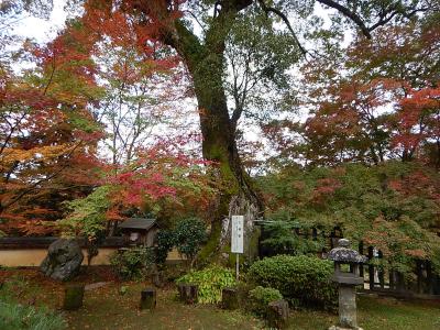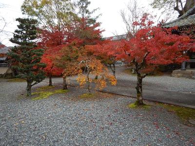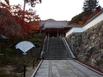 拝観受付をおこなって(御朱印帳をここであずける)、まずは境内を散策。例年より早く紅葉が始まっており、色とりどりの葉は見事。高台には在原業平の墓があったが、案外こじんまりとしていた。続いて堂内を見学。少し注意書きの張り紙が多かったような気もするが、寝て見ると見え方が異なるように傾斜をつけて作られた中庭などは面白い。