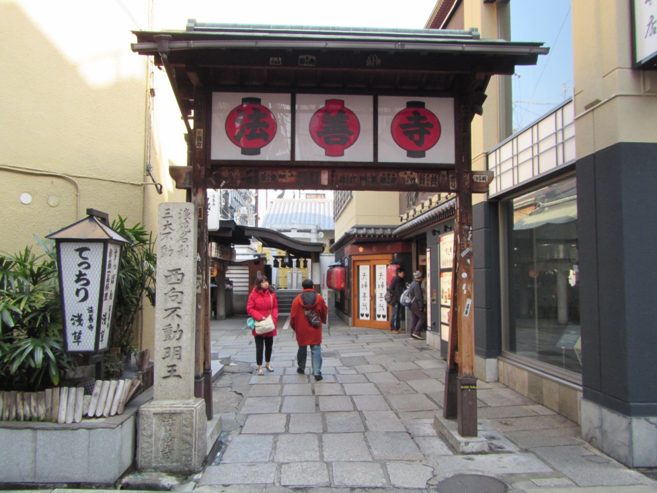 山門はあるが境内と呼べるほどの広さはない。しかし、この狭い境内で行列を作っているのが水掛け不動である。