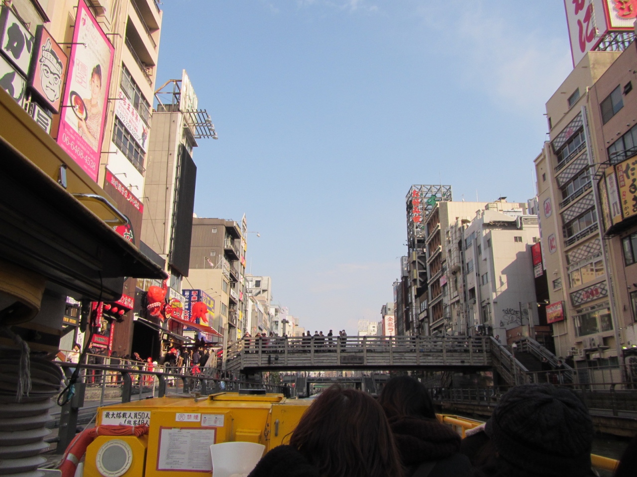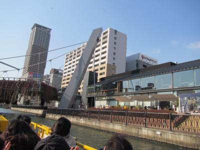 道頓堀を東西に20分間航行するが、両岸の見どころについて案内人さんがわかりやすく、面白く解説してくれる。