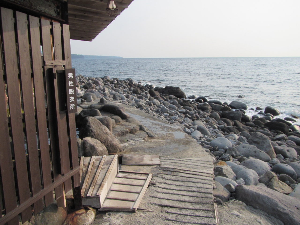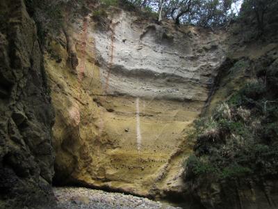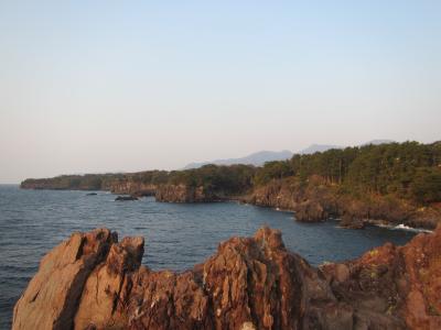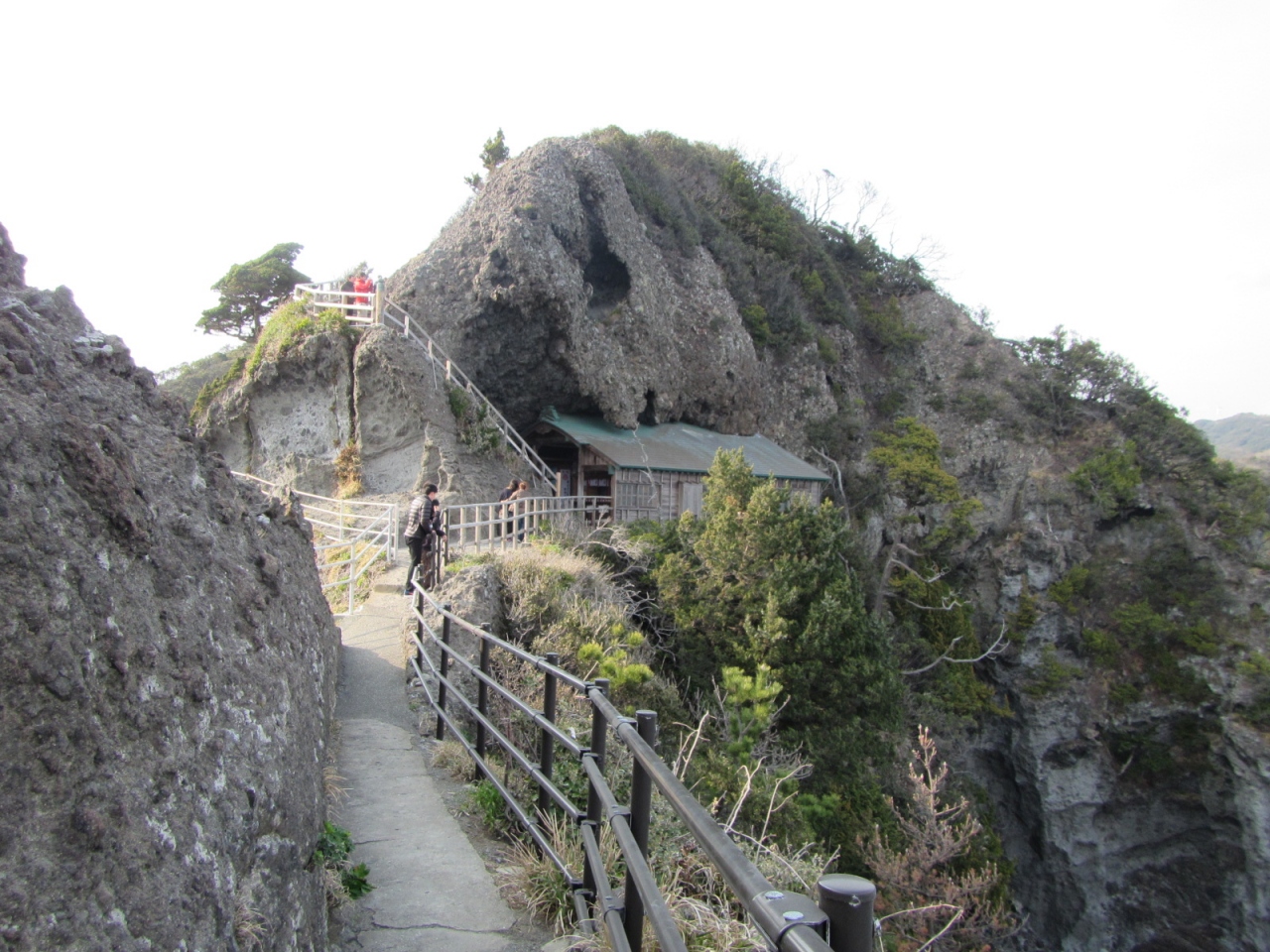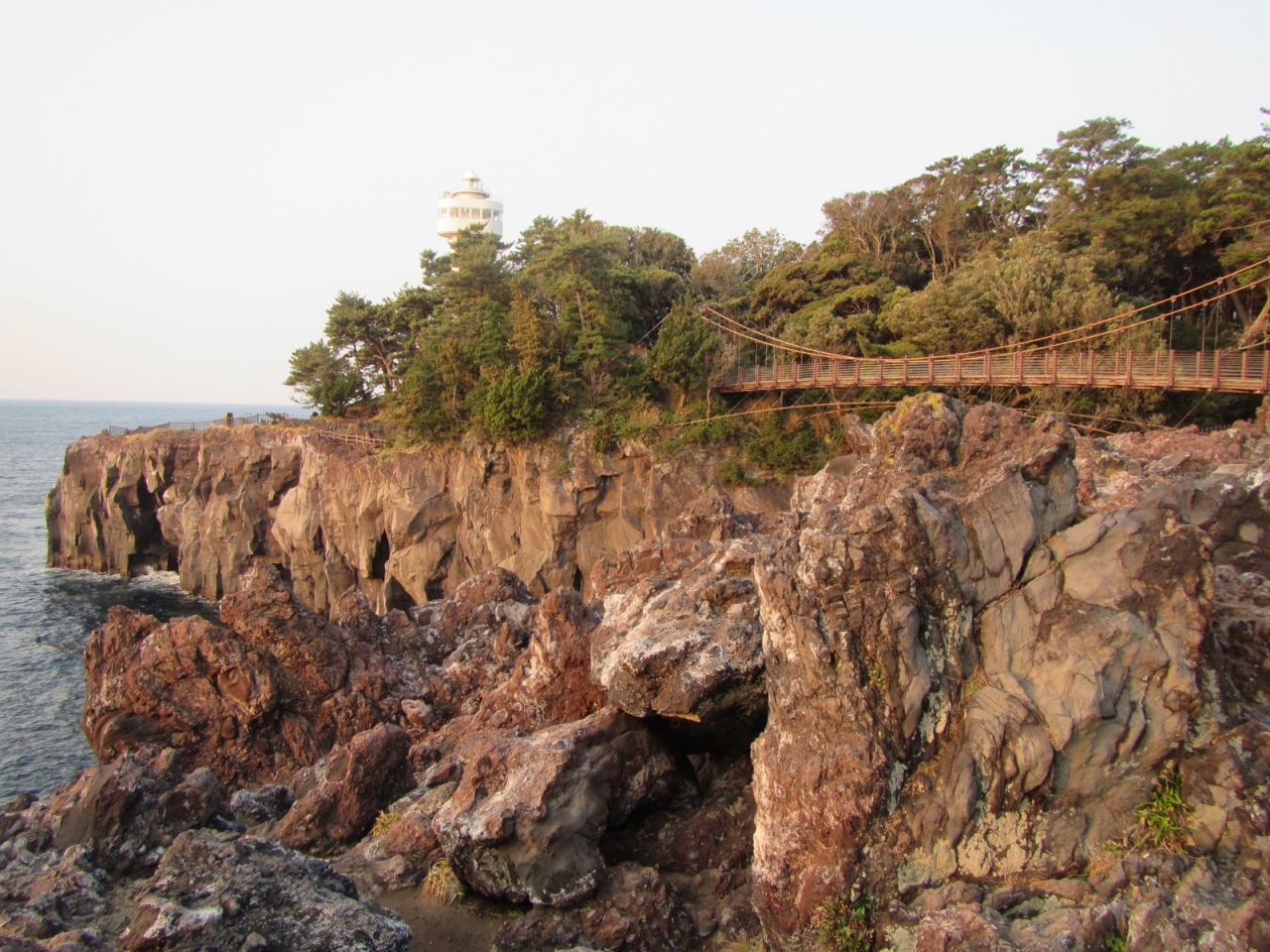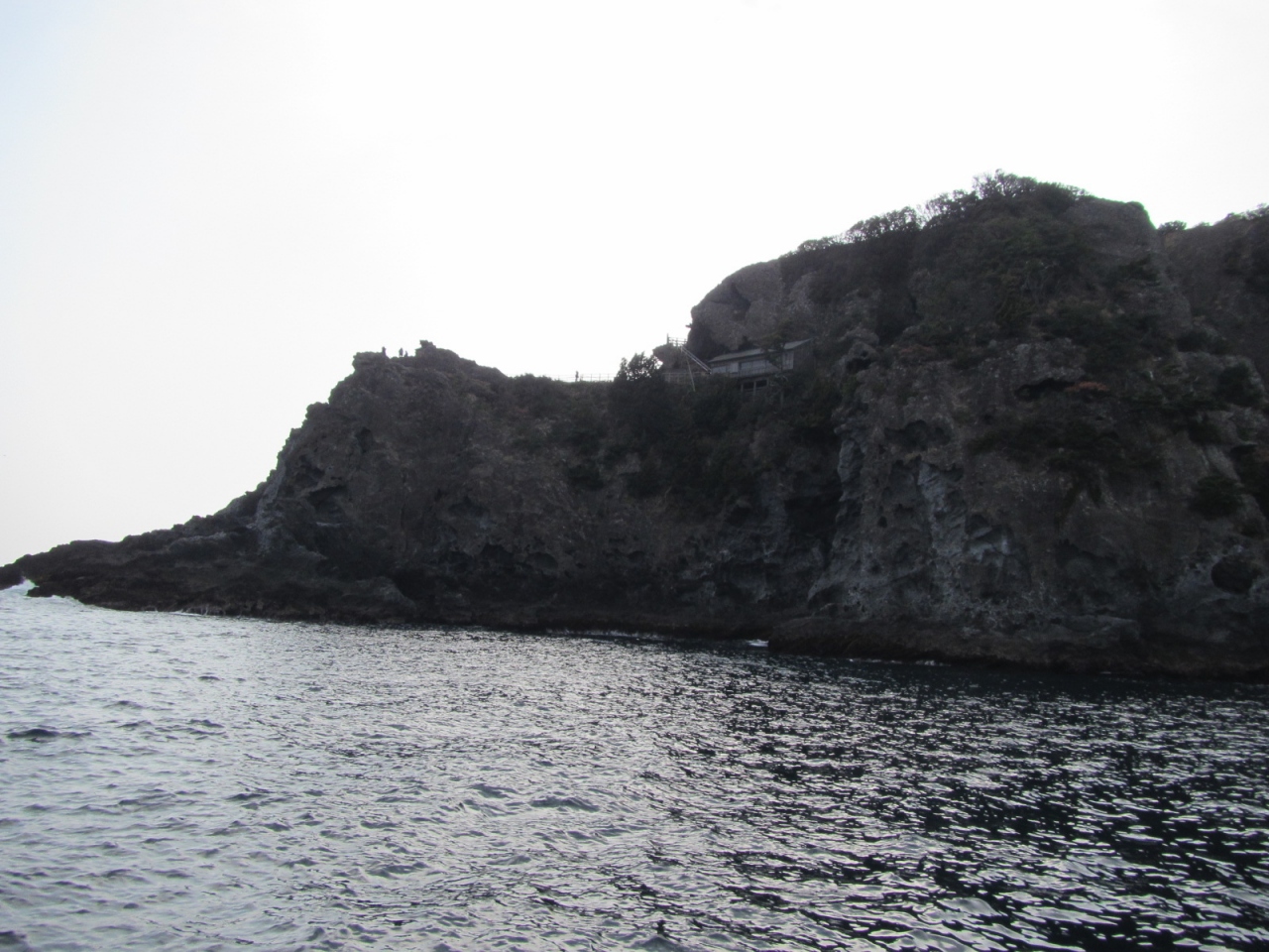 海へ歩いて行くと、石畳の道が続くが道から外れるとすぐに断崖絶壁。