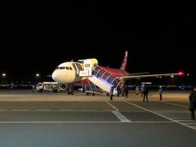 また、飛行機に乗るまではタラップ車ではなく滑走路を少し歩く。