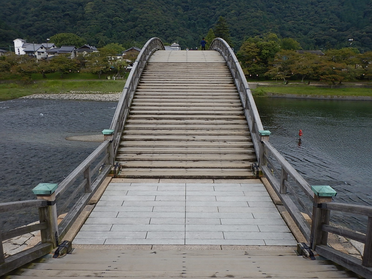橋の湾曲は実際に歩いてみるとよくわかり、先にいる人が見えなくなるほど。