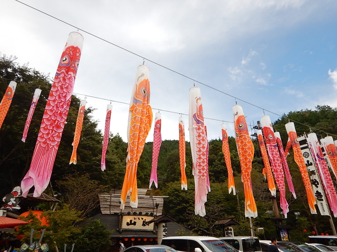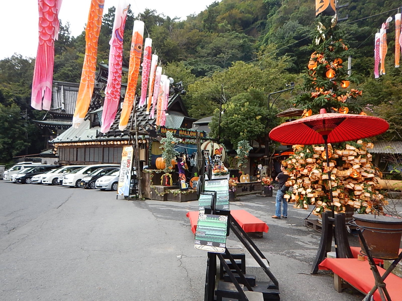 山中に突然現れるサイケな建物。無数の鯉のぼり、9月にも関わらずド派手なハロウィンの装飾、シャボン玉発生装置など色物感が凄まじい。