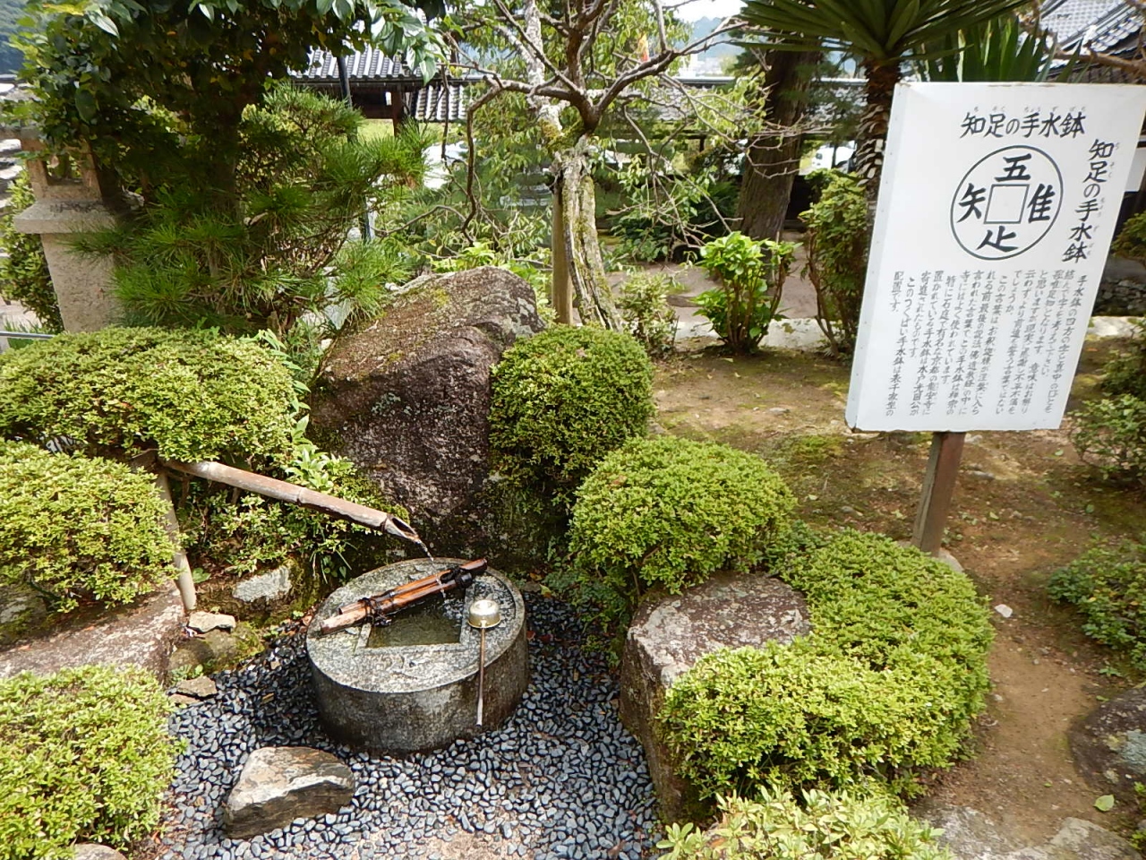 本堂周りには、知足のつくばいや一畑薬師の分院、陶器の見世物市などいろいろなものがひしめく。また五重塔のミニチュア石塔が経蔵になっていた。