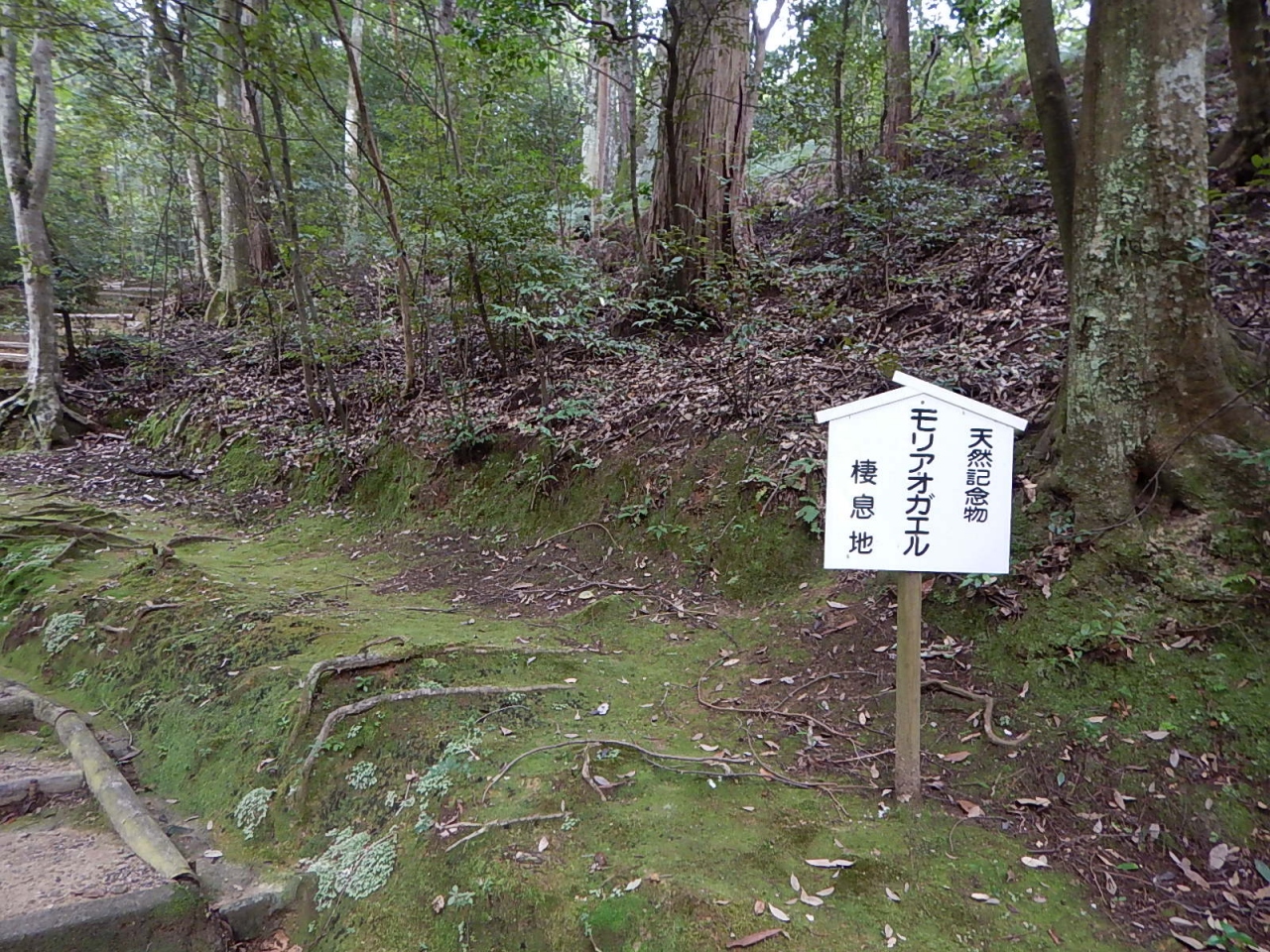 さらに境内を山の方まで散策するとモリアオガエルの生息する池がある。