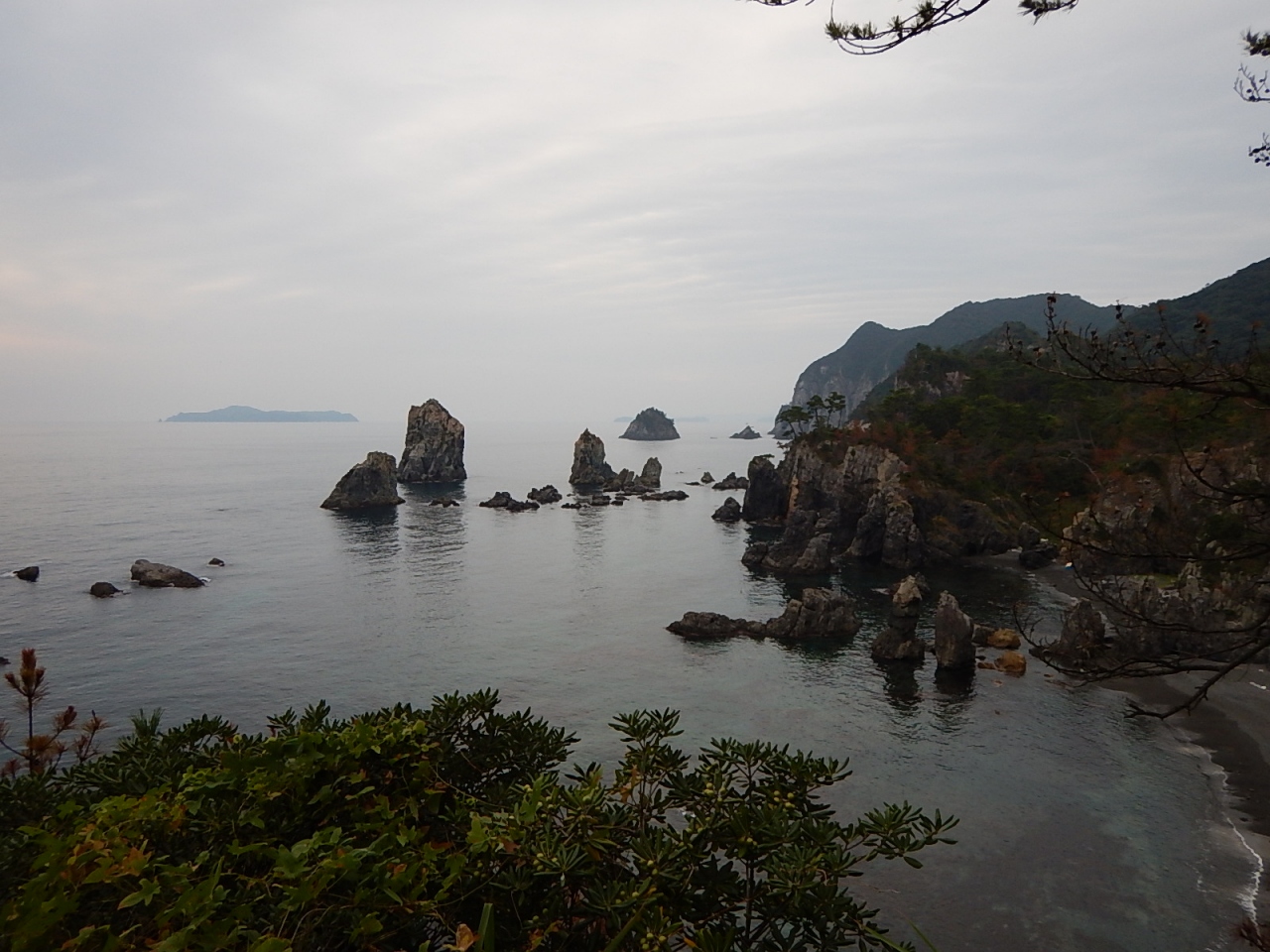 海上アルプスは青海島の周辺海域に点在する奇岩群で、様々な名前が付いている。観光船で見る方がより迫力があるとされているが、その日はもう終わってしまっていたので、陸から自然研究路を通って見ることにした。