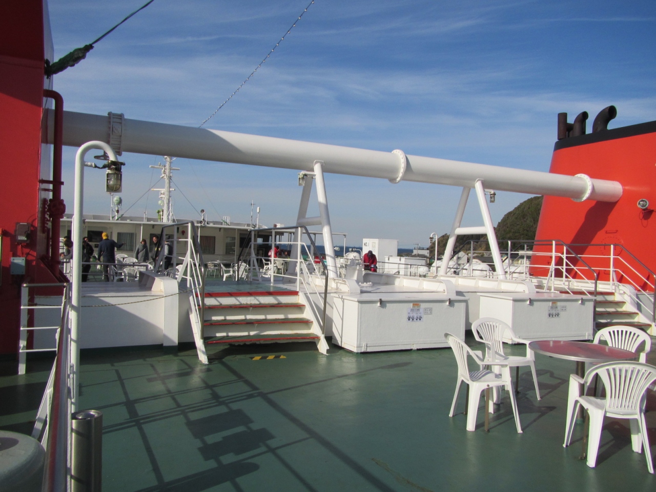 神奈川方面へ行く人やバスツアー(フェリーにはバスがそのまま載る)、バイクでツーリング集団といった人たちが思い思いの時間を過ごしていた。