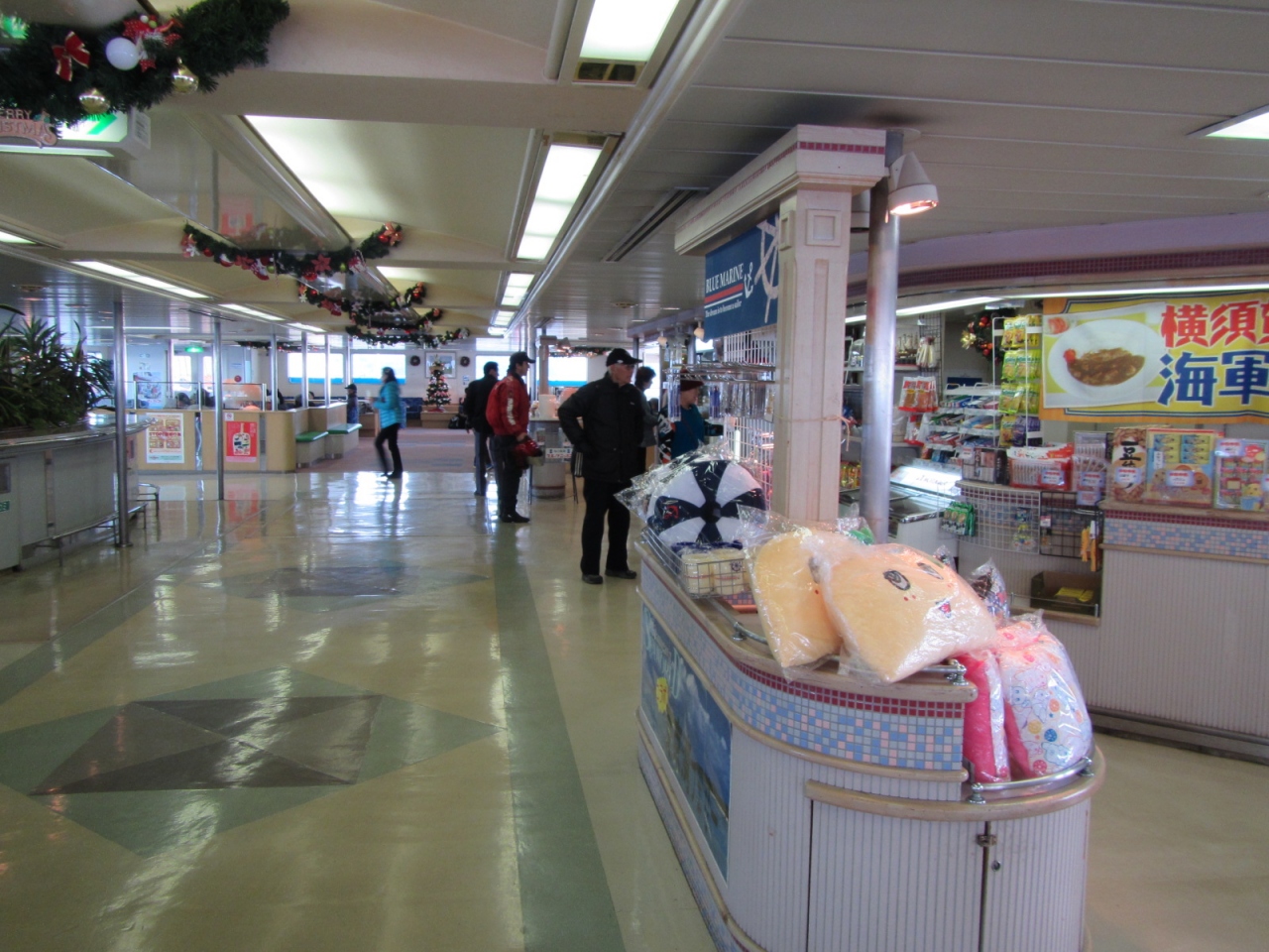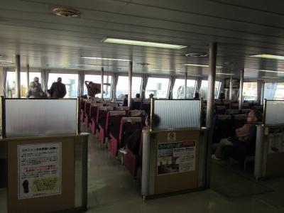 航行時間は40分。船内を見学すると、ソファーの休憩スペースや、売店、土産屋、追加料金の必要なグリーン室があったりしてのんびりと時間を過ごす設備がある。