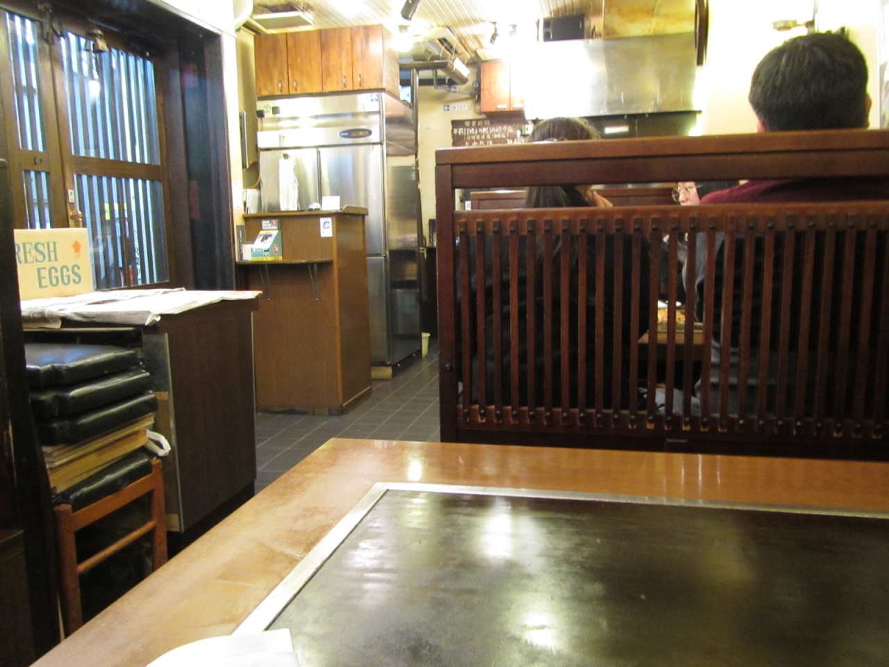 店内も外にはみ出すようにイステーブルが置かれていて、適当に畳が乗っかっている。
