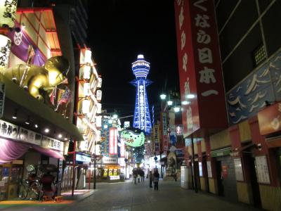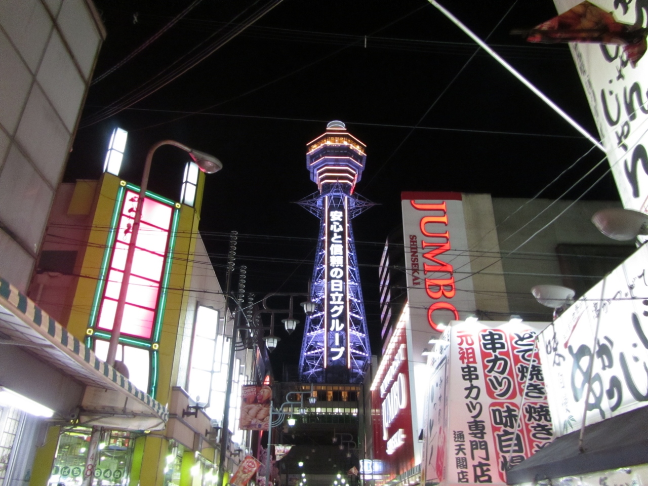 中心は通天閣で、展望台になっているので上って夜景を見るのも楽しい。