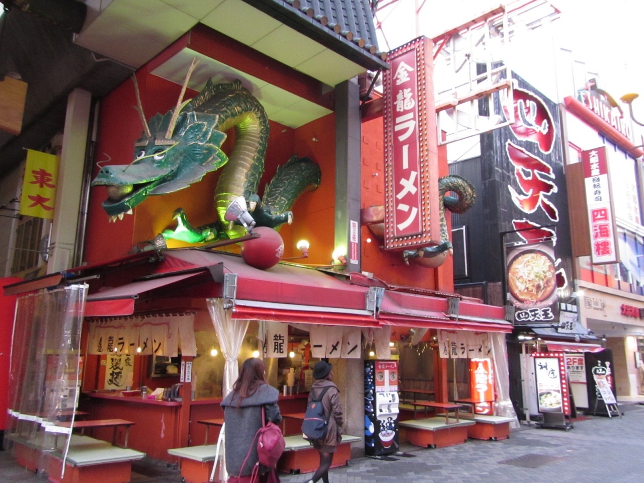 大きな龍のオブジェの看板が目印。といっても道頓堀に巨大看板は珍しくない。