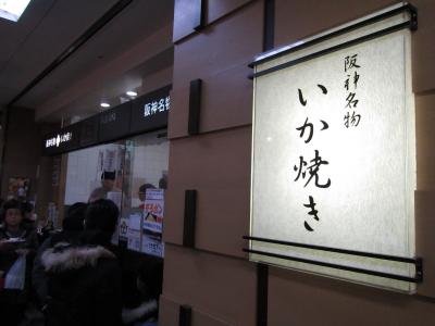 まずは、阪神名物いか焼き。行列ができているが客さばきが早いのですぐに購入できる。
