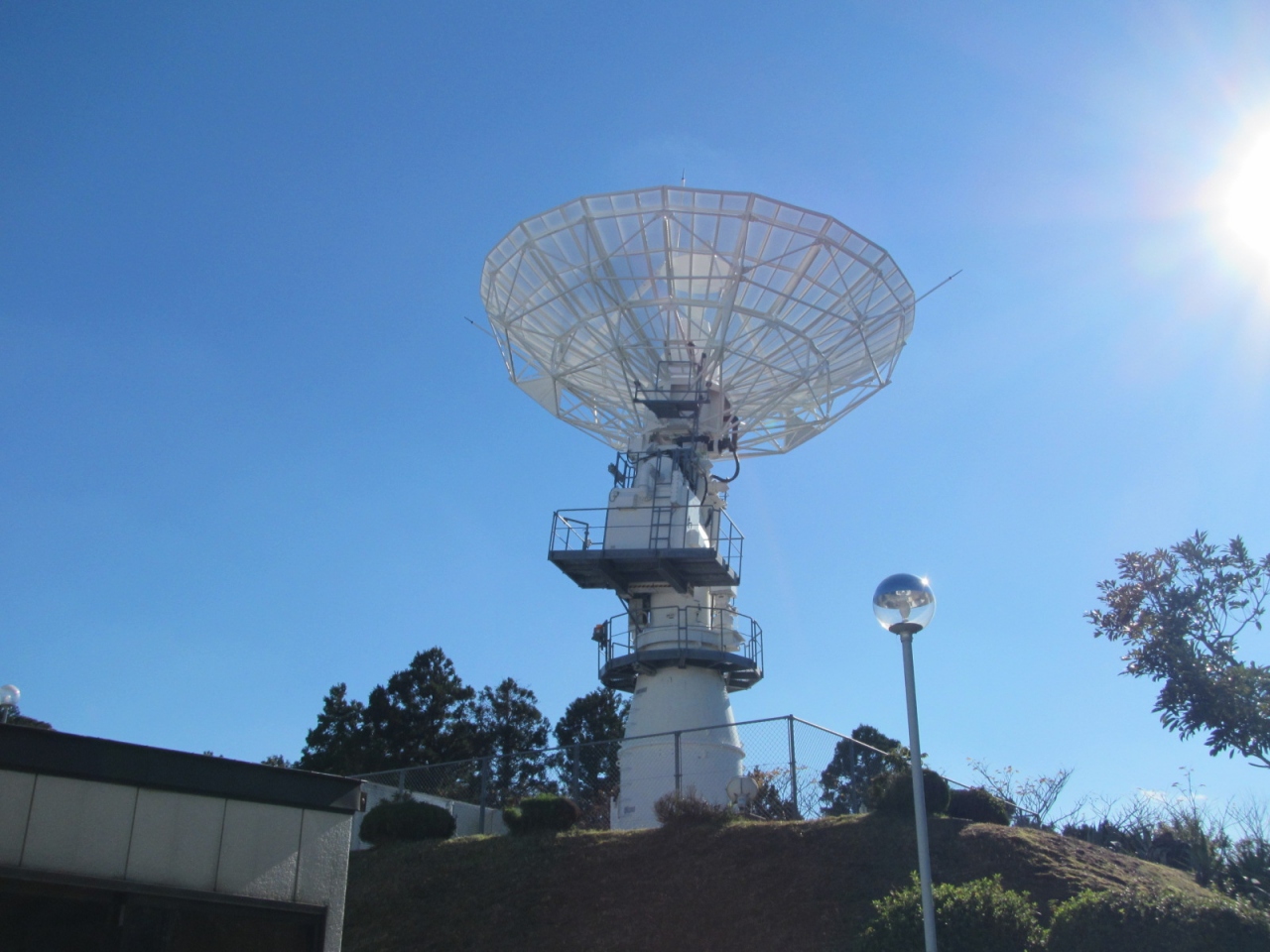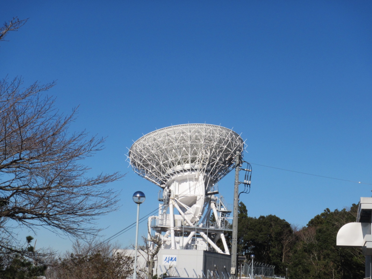 人工衛星からの電波を受信する管制施設だが、1階の一部が一般も立ち入り可能な展示スペースになっている。展示は施設の説明や日本が打ち上げたロケットの模型などで、宇宙好きにとっては見ごたえがあると思う。
