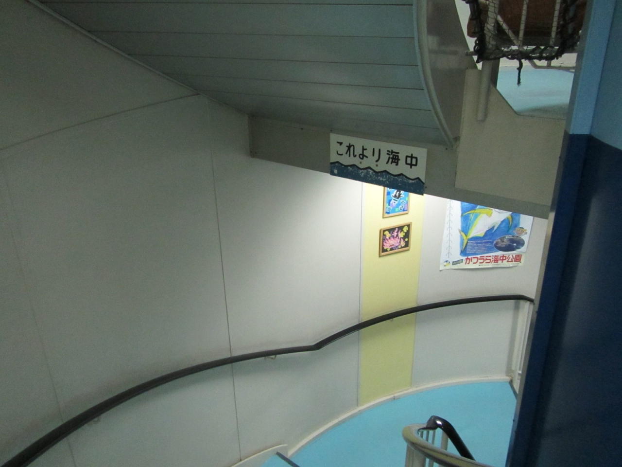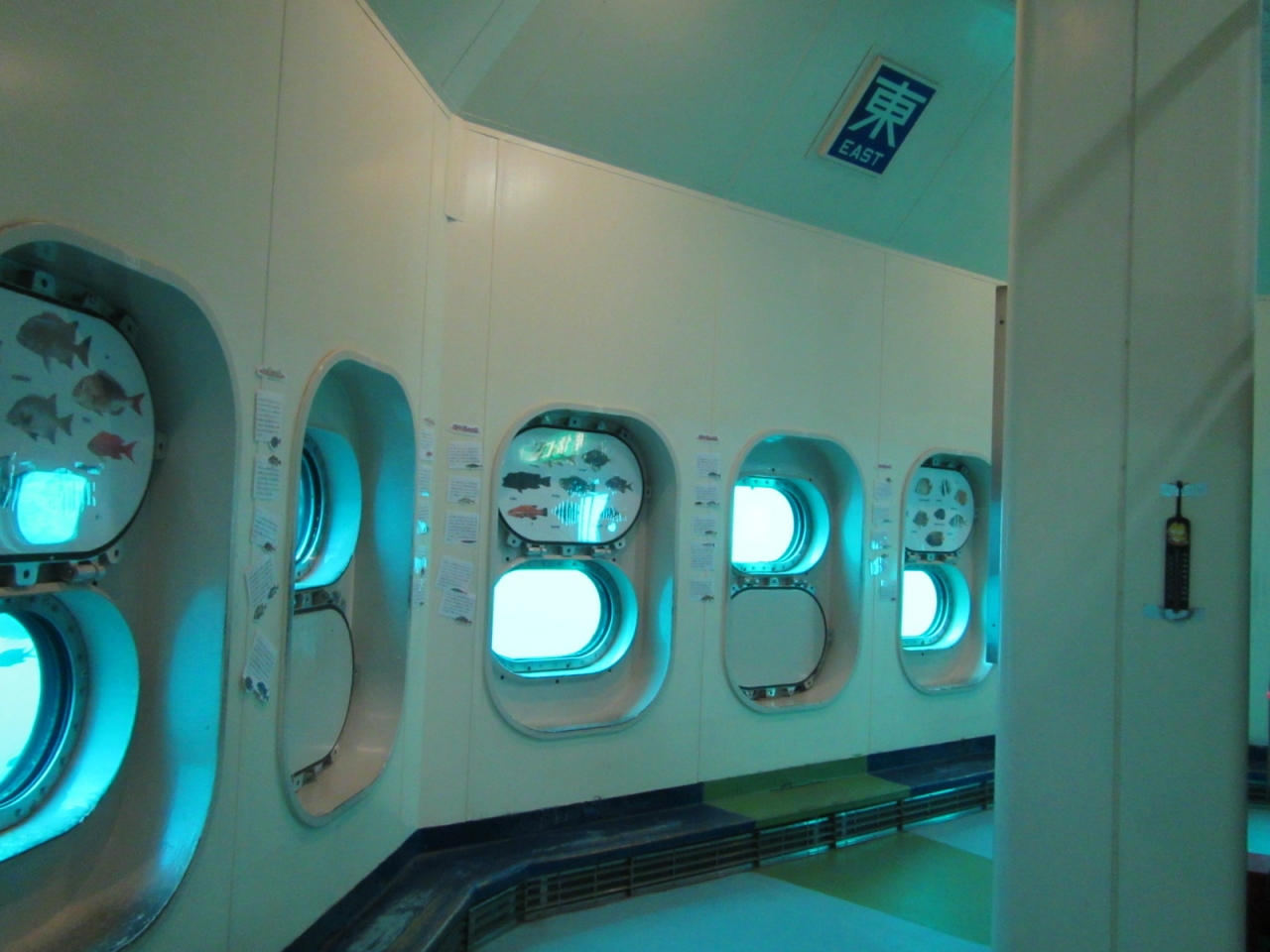 塔の中はらせん階段で海中へと降りて行く構造で、最深部に行くと壁に窓があり、魚が間近で観察できるようになっている。