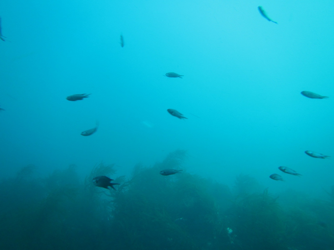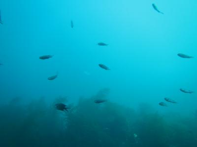 このあたりは波が速く、砂が舞い上がりやすいので、透明度は若干低い。