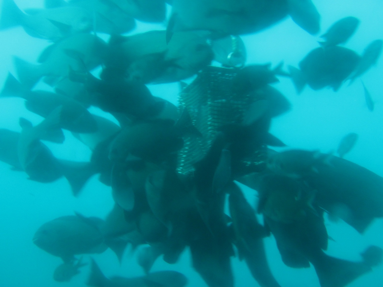 それでもエサ袋が吊るされていて、それに群がる魚がたくさん見れるのがよい。- 旅行時期