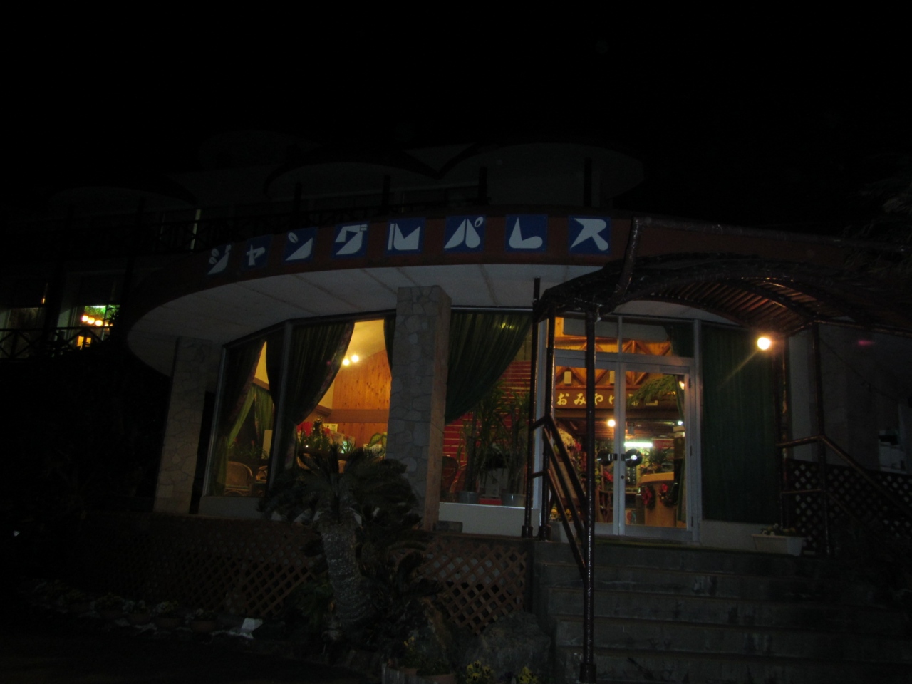 ジャングル風呂は背の高い熱帯植物が生い茂っていて、いくつかの趣向を凝らした風呂があり、けっして広くはないが十分楽しめる。