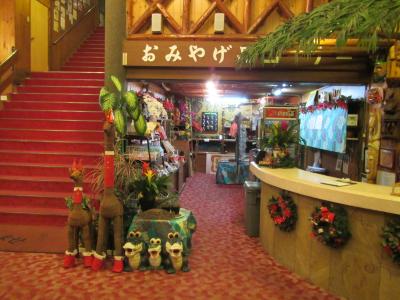 ヤシに囲まれた外観に、ホテルに入るとこれまたバブル期の南国をイメージしたような装飾。