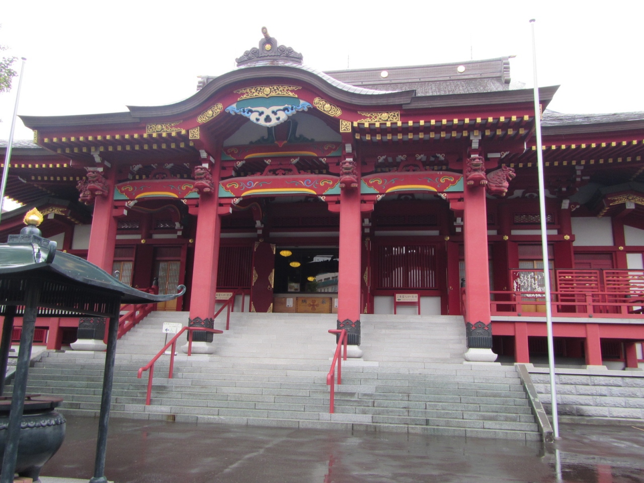 山門はなく、境内もそれほど大きくはないが、朱塗りの本堂はとても大きく立派である。本堂内部に入って拝観することもできる。