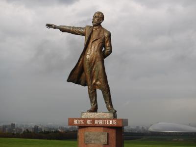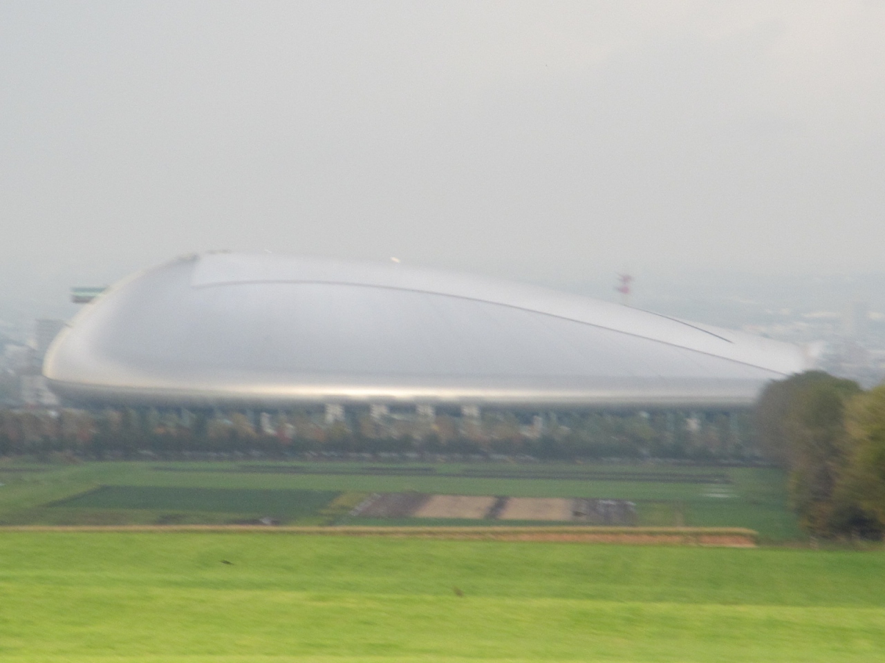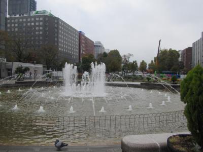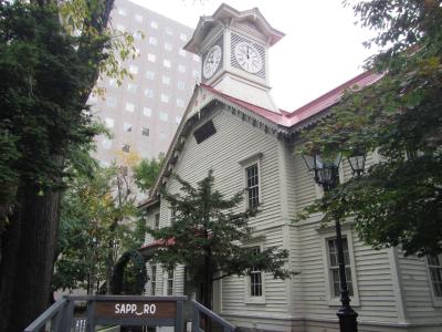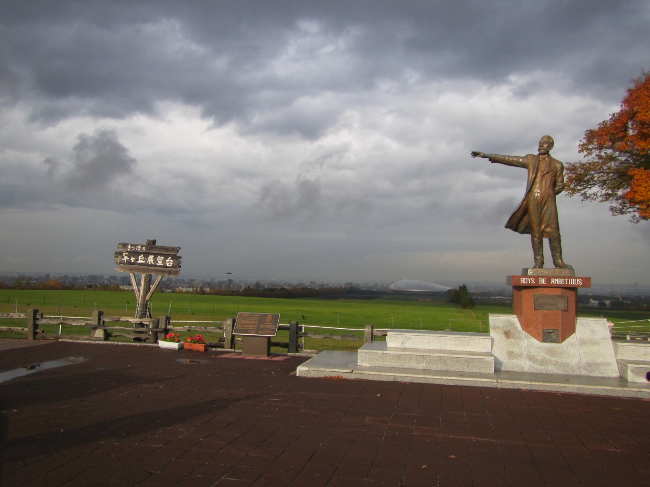 有名なクラーク像の前には記念撮影用のカメラ台が置かれていて人気の場所。遠くには札幌ドームも見える。