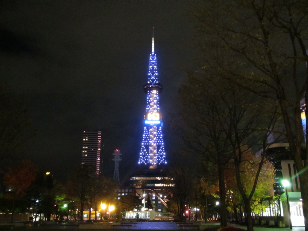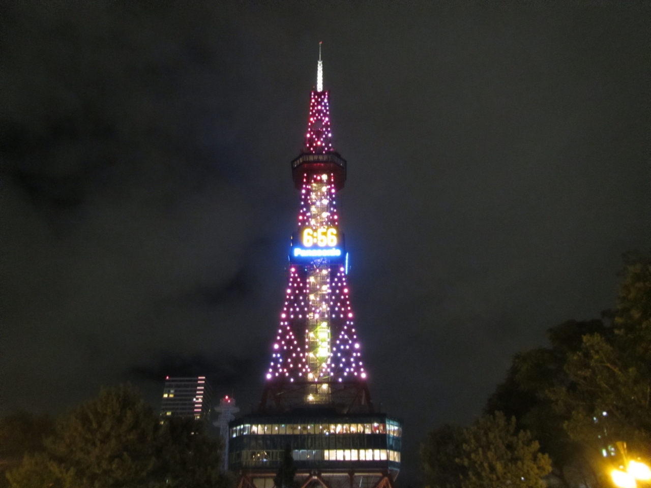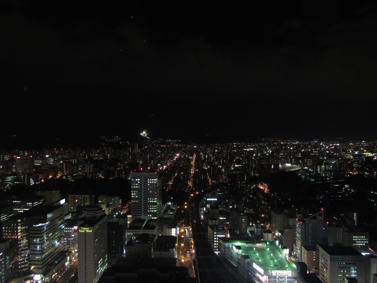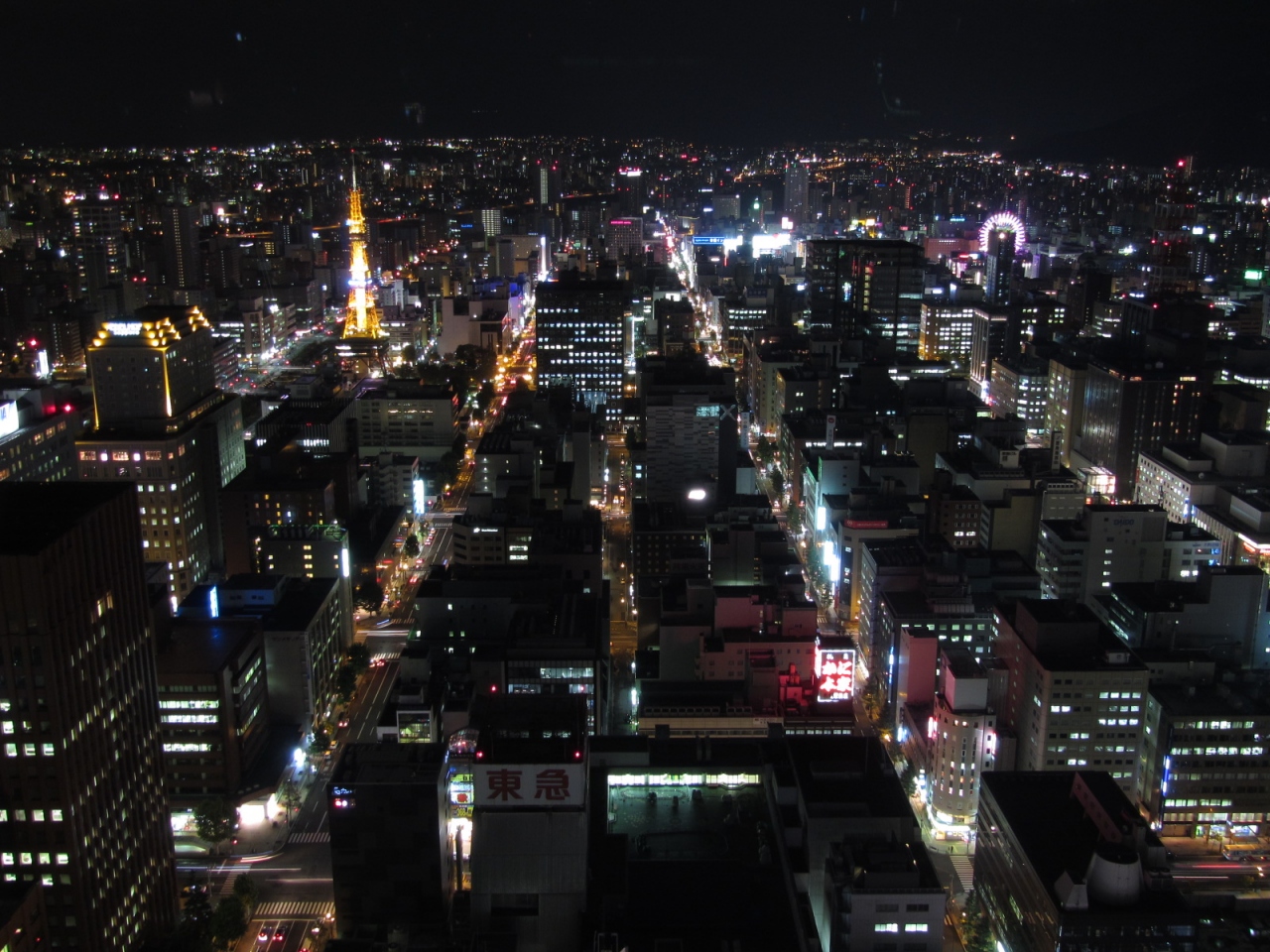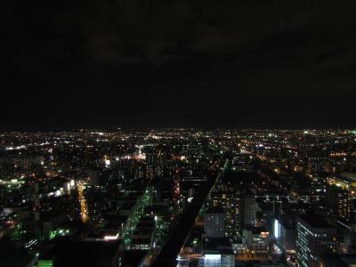 展望室は回廊になっていて、東西南北ガラス張り。薄暗くなっているので夜景がとても見やすい。すすきのの観覧車やテレビ塔が良く見える。