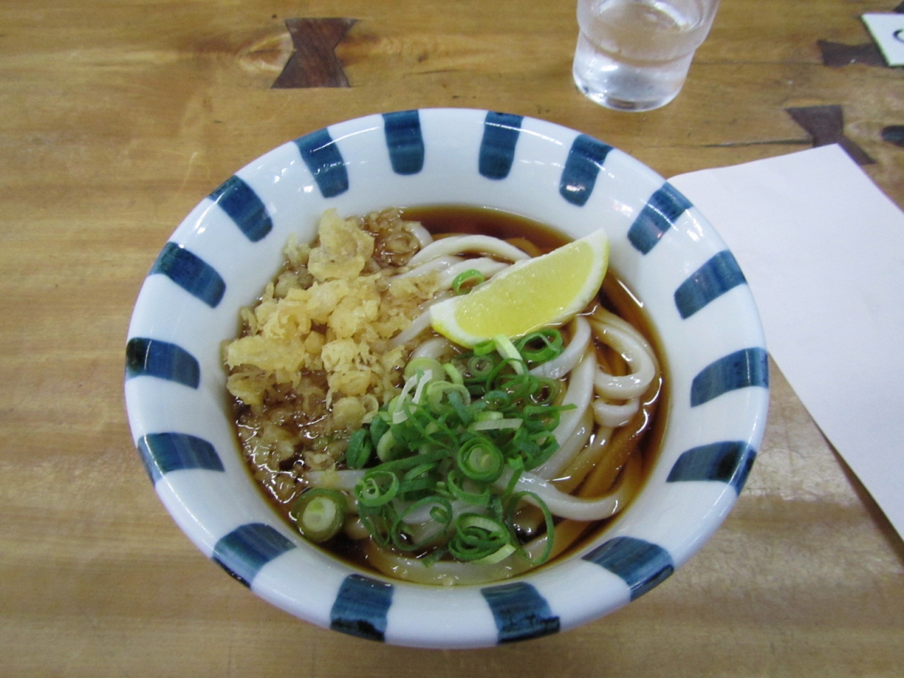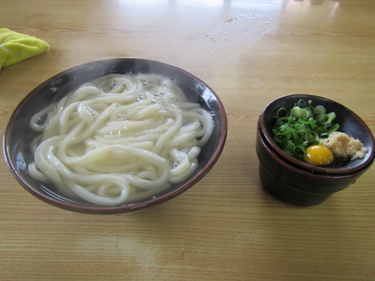 だしとお茶の器が共用という点に少し驚くが、うどんはうまい。- 旅行時期