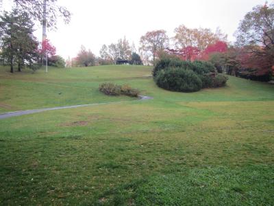 バスを使ったアクセスはいくつかあり、HTB本社を見学してから行ったので、徒歩約5分のところにある「平岸7-13」のバス停を利用した。本数が極端に少なく、地元の人しか乗らないバスだが、終点は羊ヶ丘展望台目の前まで登ってくれる。