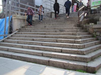 途中で階段専門の駕籠屋とすれちがい、山門をくぐって五人百姓のいる場所へ。ここまで10分。