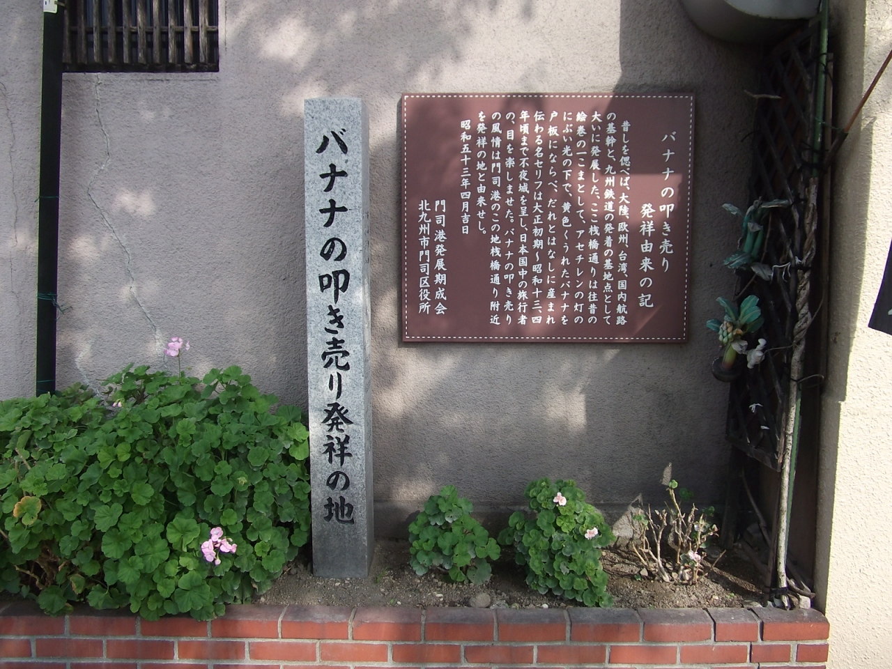 門司港はバナナの叩き売り発祥の地であり、門司港駅から徒歩5分の場所に記念碑がある。