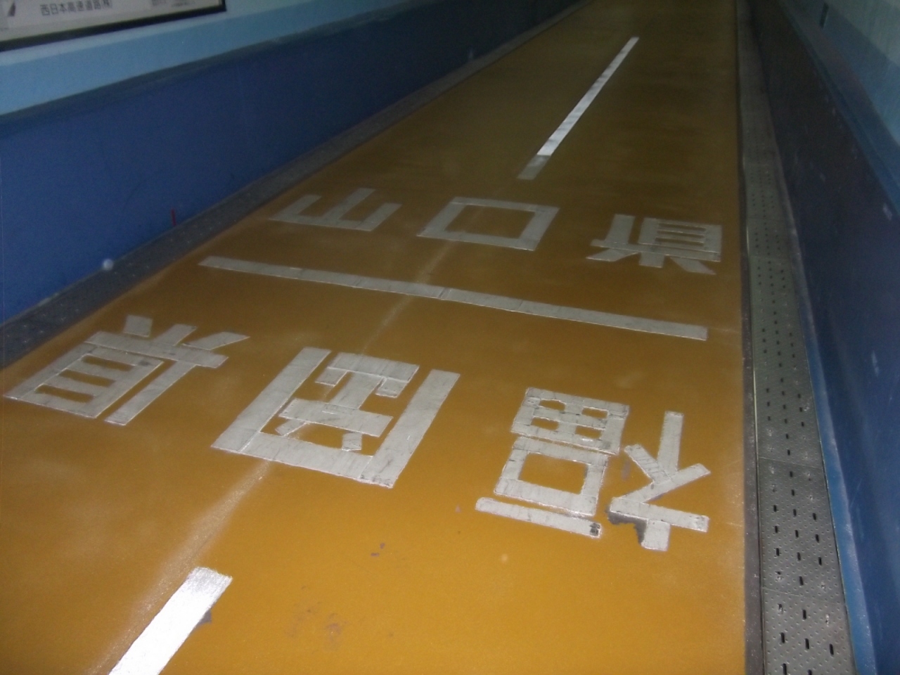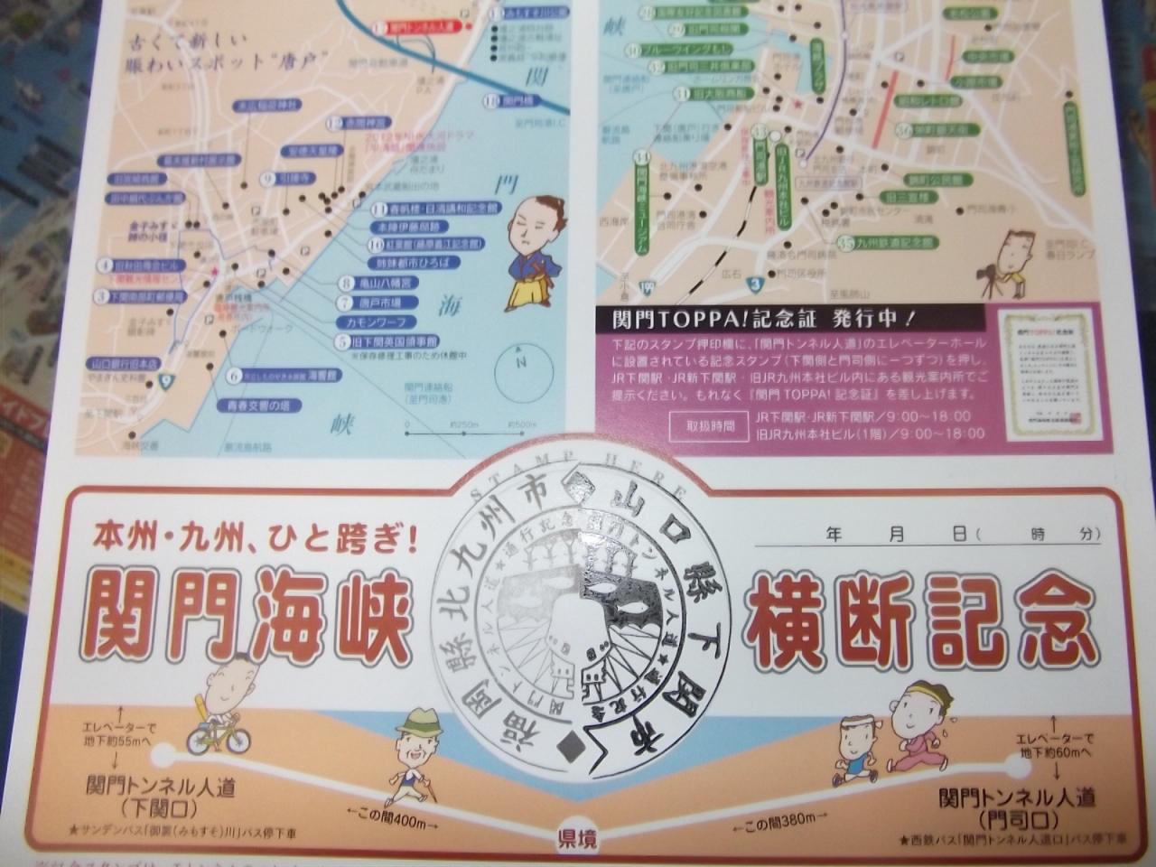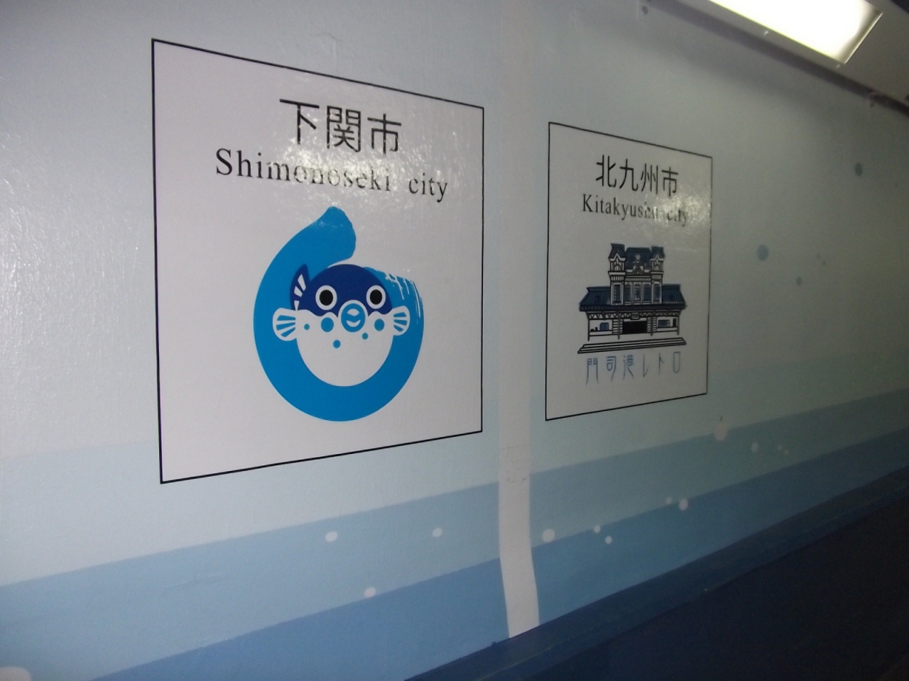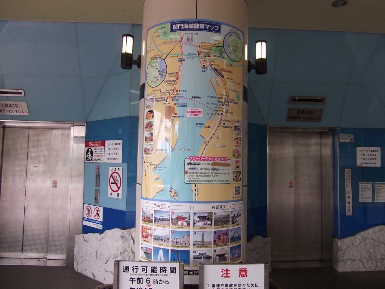 門司港側と下関側の地下エレベータホールにはそれぞれ半円のスタンプが置かれている。