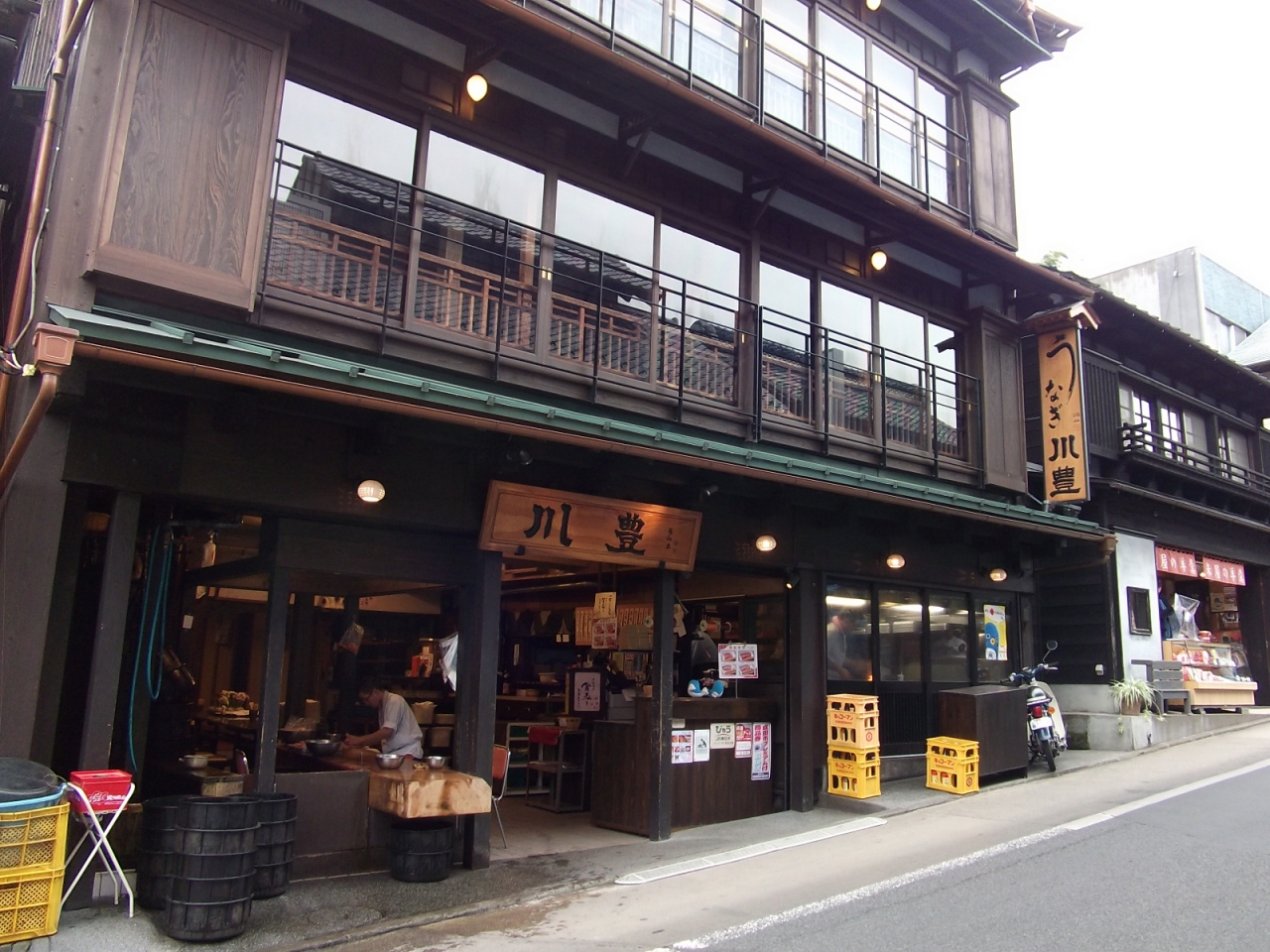 席に着いて待っている間、店先で鰻をさばいている職人さんたちを見ていてた。3人の職人さんが流れ作業で次々と鰻をさばいていくのはまさに職人の技である。鰻と関係のない雑談をしながら作業しているのも面白い。