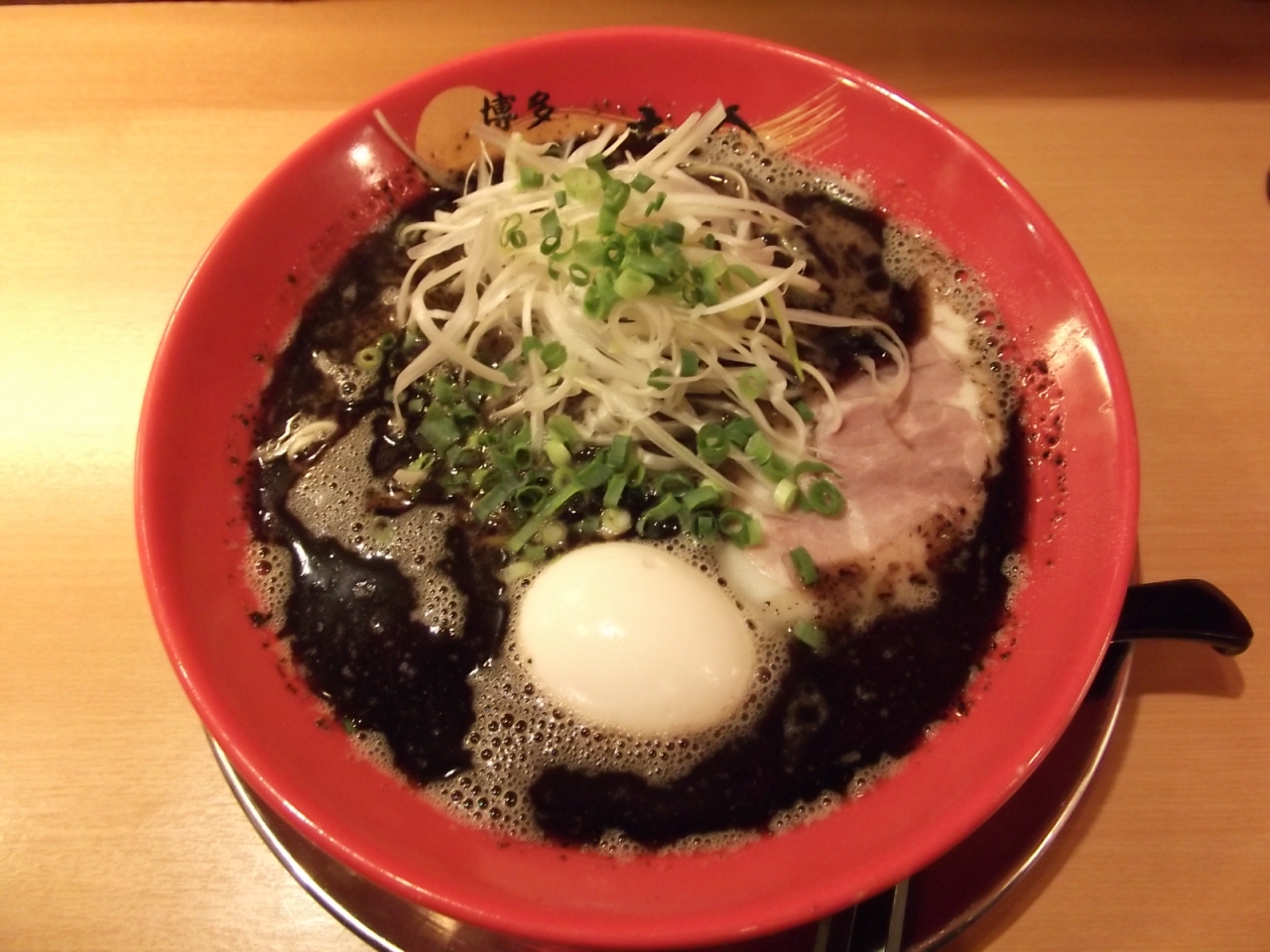 黒いとんこつスープにねぎや味玉が乗っていて、味・ボリュームともになかなかだった。- 旅行時期