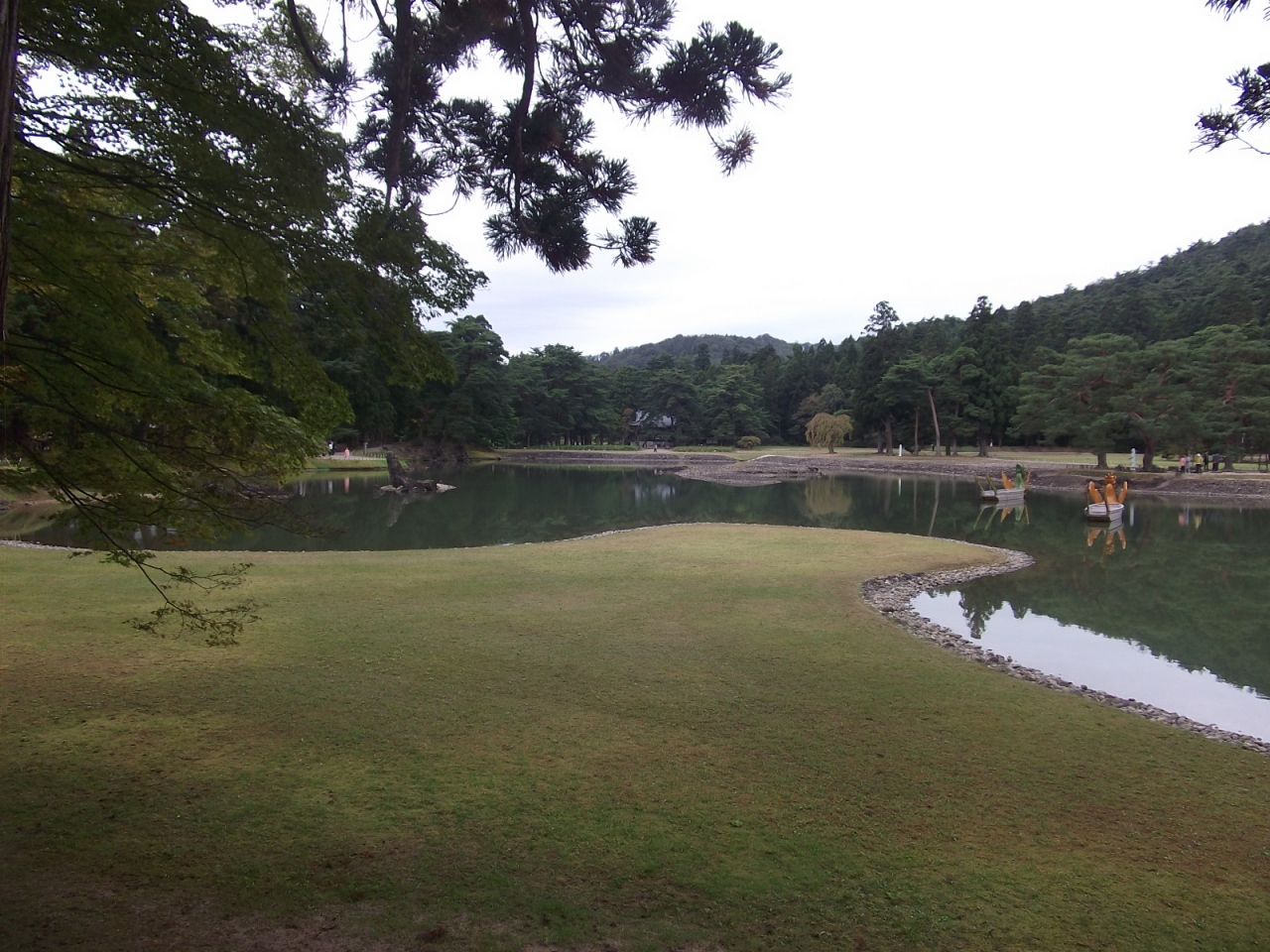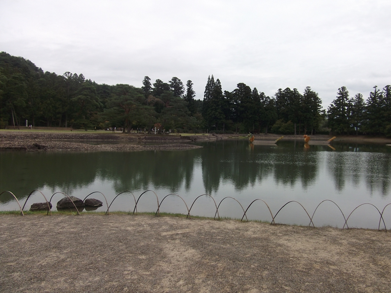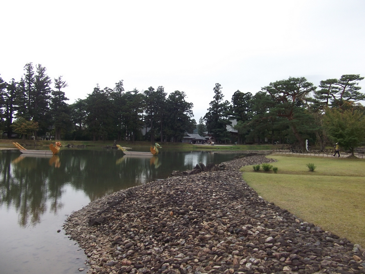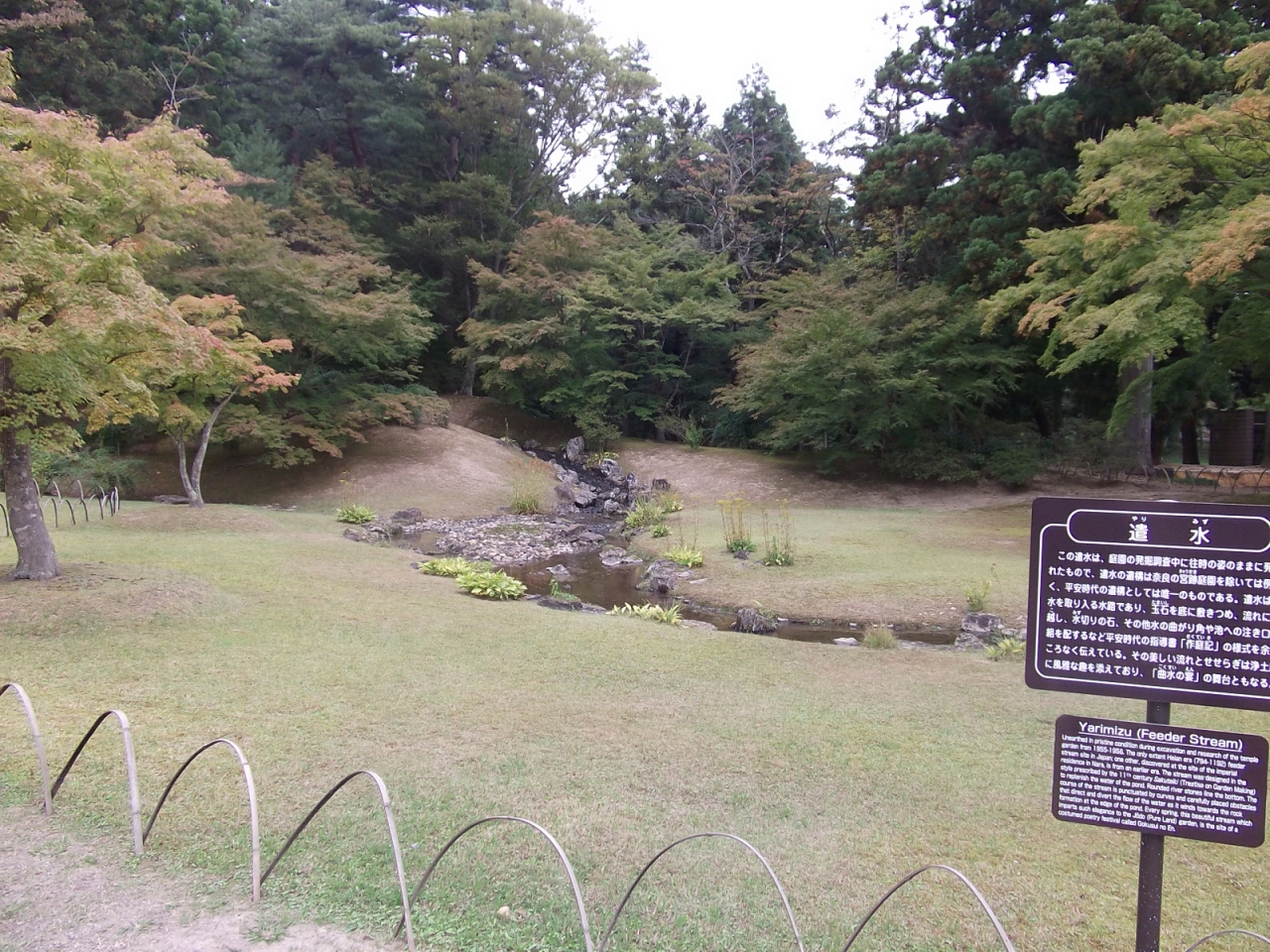 浄土庭園は境内横から時計回りに歩くなら築山、曲水の宴が行われる遣水、洲浜あたりは押さえておきたい。1周20分程度。