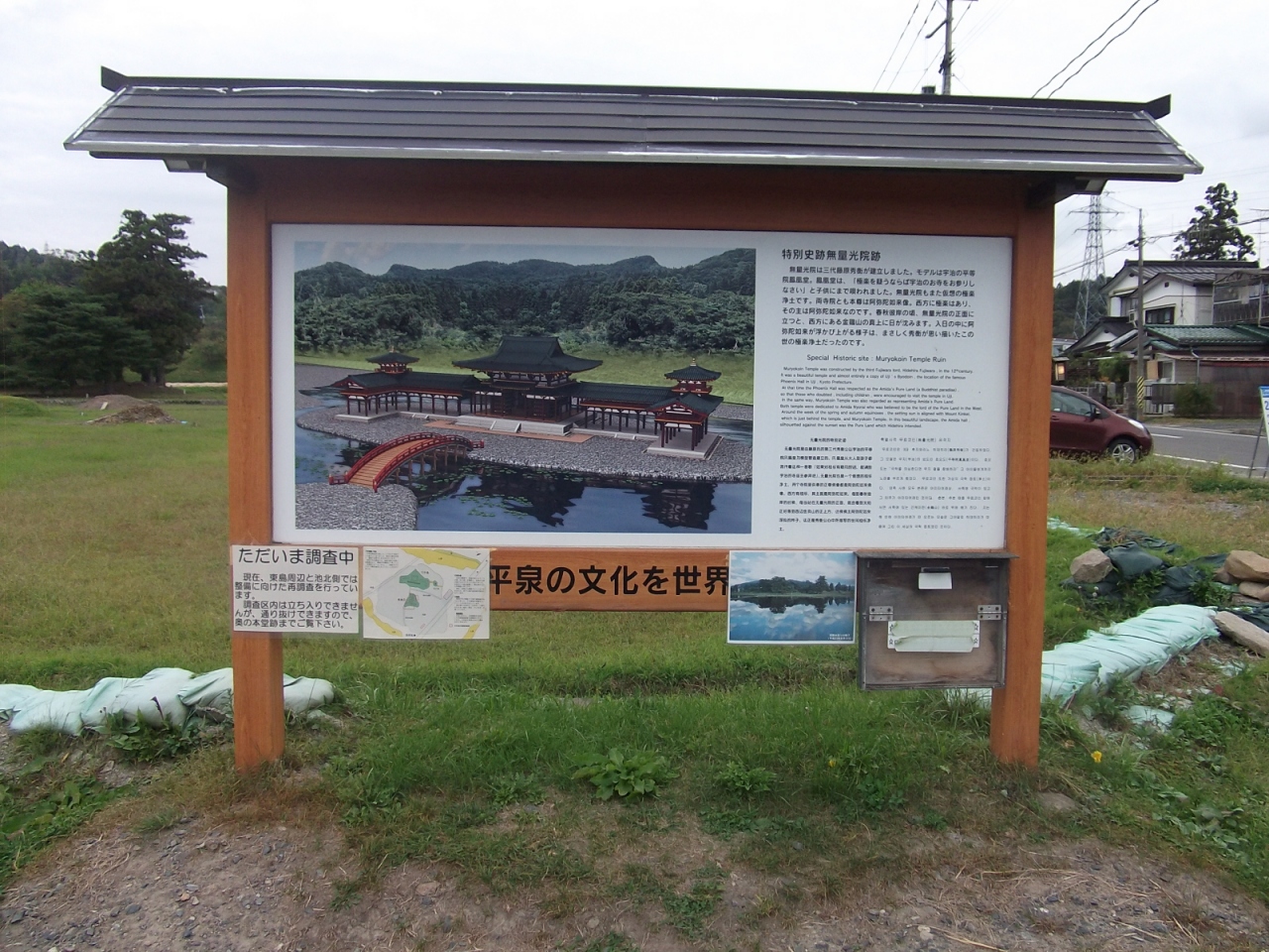 平泉駅からるんるん号で3分、徒歩でも約700m、10分程度。