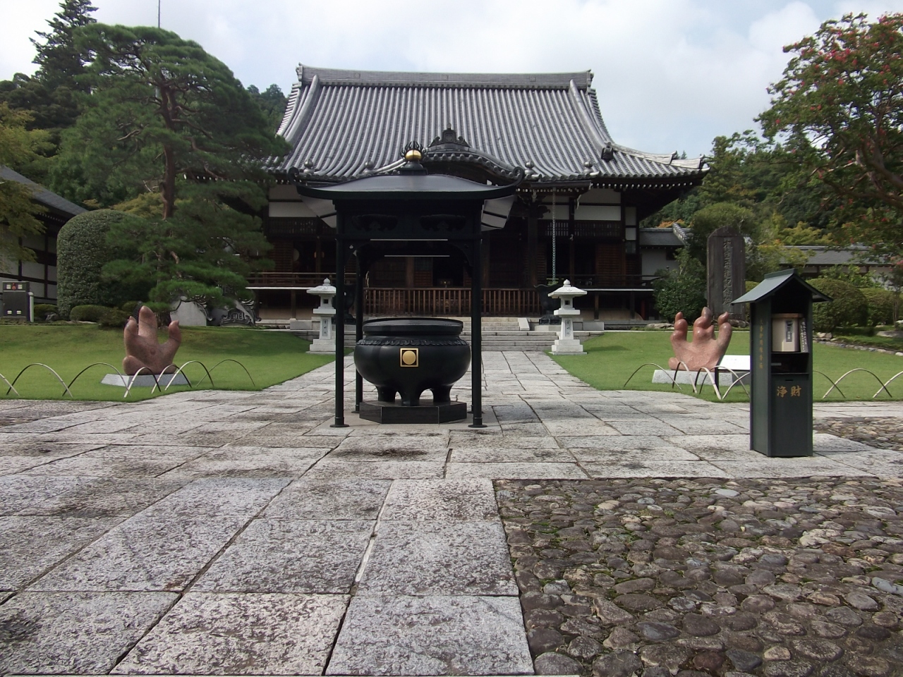 本堂前に謎の彫刻(インスタレーション?)があった。