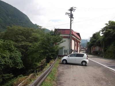 旅館の入り口は街道沿いにあり、駐車場は旅館を過ぎて左に入った道の先にある。