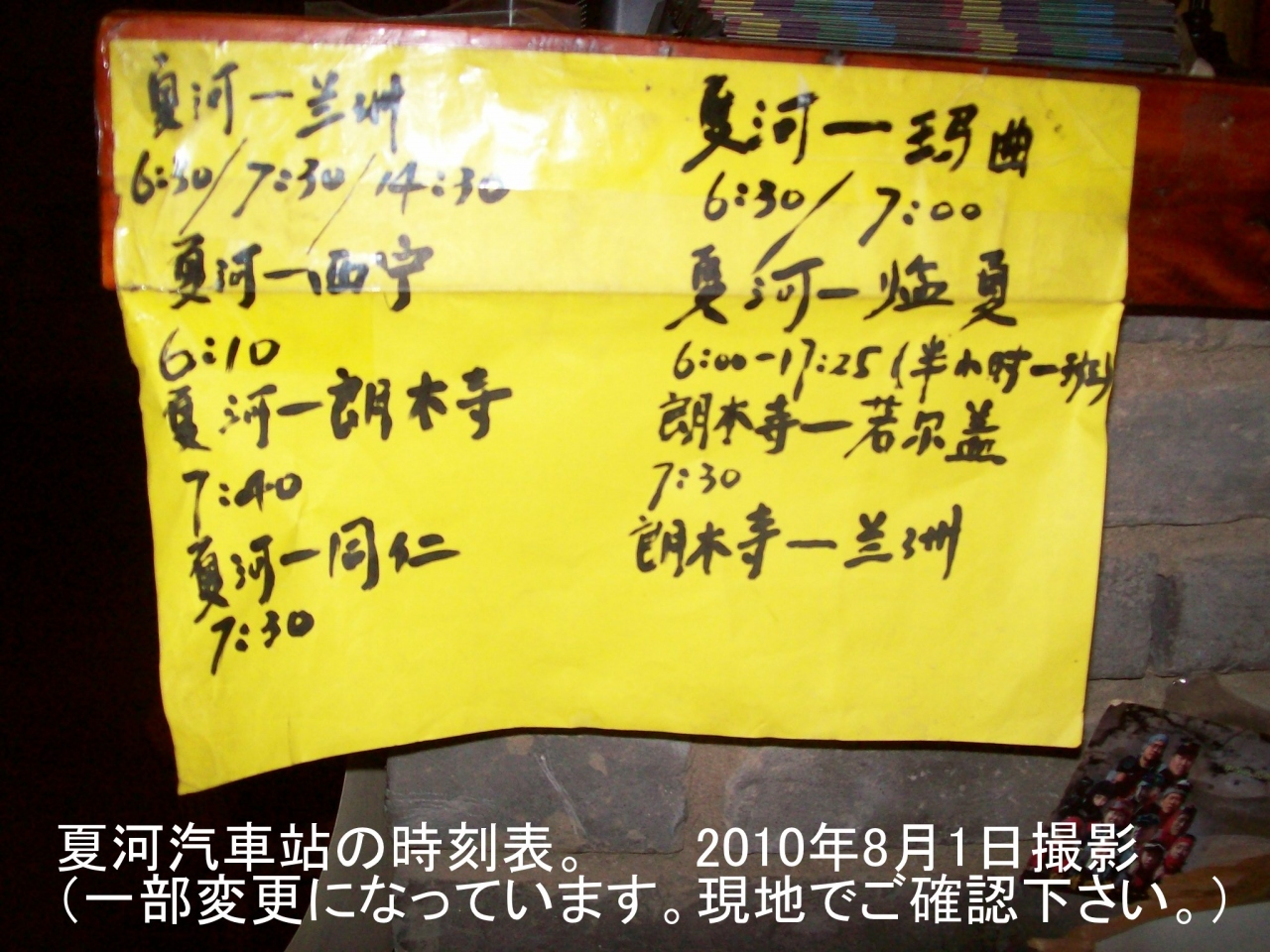 夏河汽車站には時刻表の掲示がなく。。