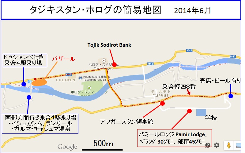 ・ドゥシャンベ~ホログ:乗合四駆,300ソモニ≒6,200円、所要14時間。