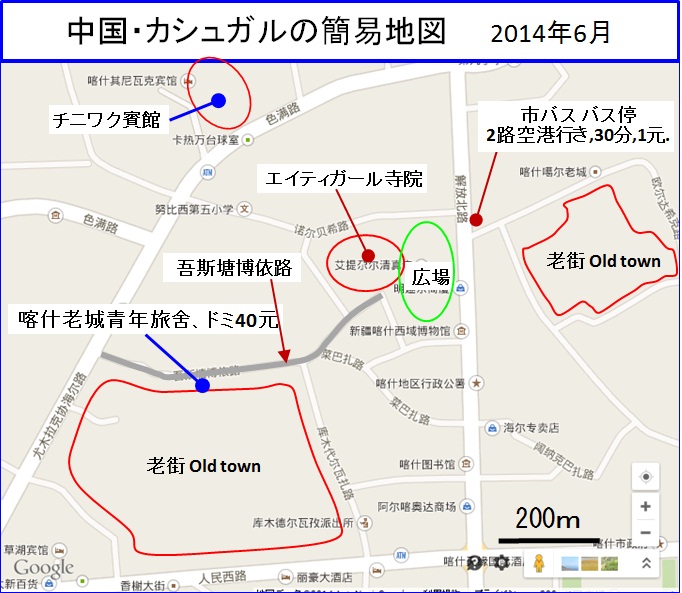 昔買ったカシュガルの地図には、喀什老城として恰薩路の恰薩巷一帯がカシュガルで一番カシュガルらしい所として紹介されていました。