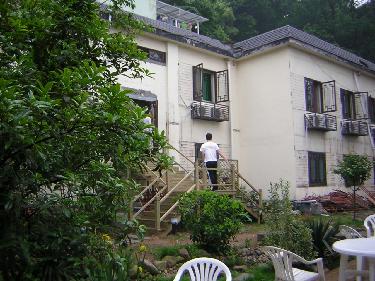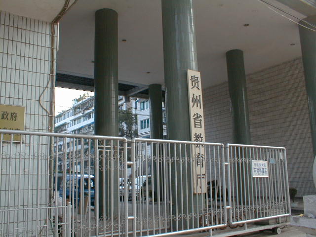 場所は、貴陽の中心、大十字を西へ歩いて5分ちょっと位、道路沿いで道の北側にあります。左の写真は入り口です。このデカイ門を入ると、広い中庭があり、正面に大きな建物が見えます。この建物を入った所に受付があり、部屋は全部1階にあります。受付の人はとっても感じのいい女性でした。- 旅行時期