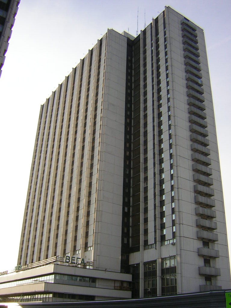 地下鉄駅から地上に上がると、目の前にドッカ~ンと背の高いビルが3~4本見えます。イズマイロボ・ベガは後ろ側の建物でした。チェックイン手続きはすぐ、滞在登録(レギストラーツィア)は5分位で完了、なぜか1ルーブル。*宿は日本の旅行社で申込み。一泊9,500円。「ツインのシングルユース」と聞いてたがダブルだった。ただ!掛け布団は一人用が2枚並べてあった。こんなの見たの初めて、笑ろてしもた。