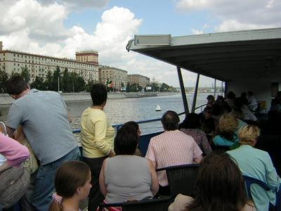 モスクワ大学のある雀が丘の船着場から乗りました。地下鉄「ヴァラビョーヴィ・ゴールィ駅」からゆっくり歩いても10分足らずで着きます。船は15分程度で次々と来るのでなかなか便利。船賃は250ルーブル、すぐに買えます。